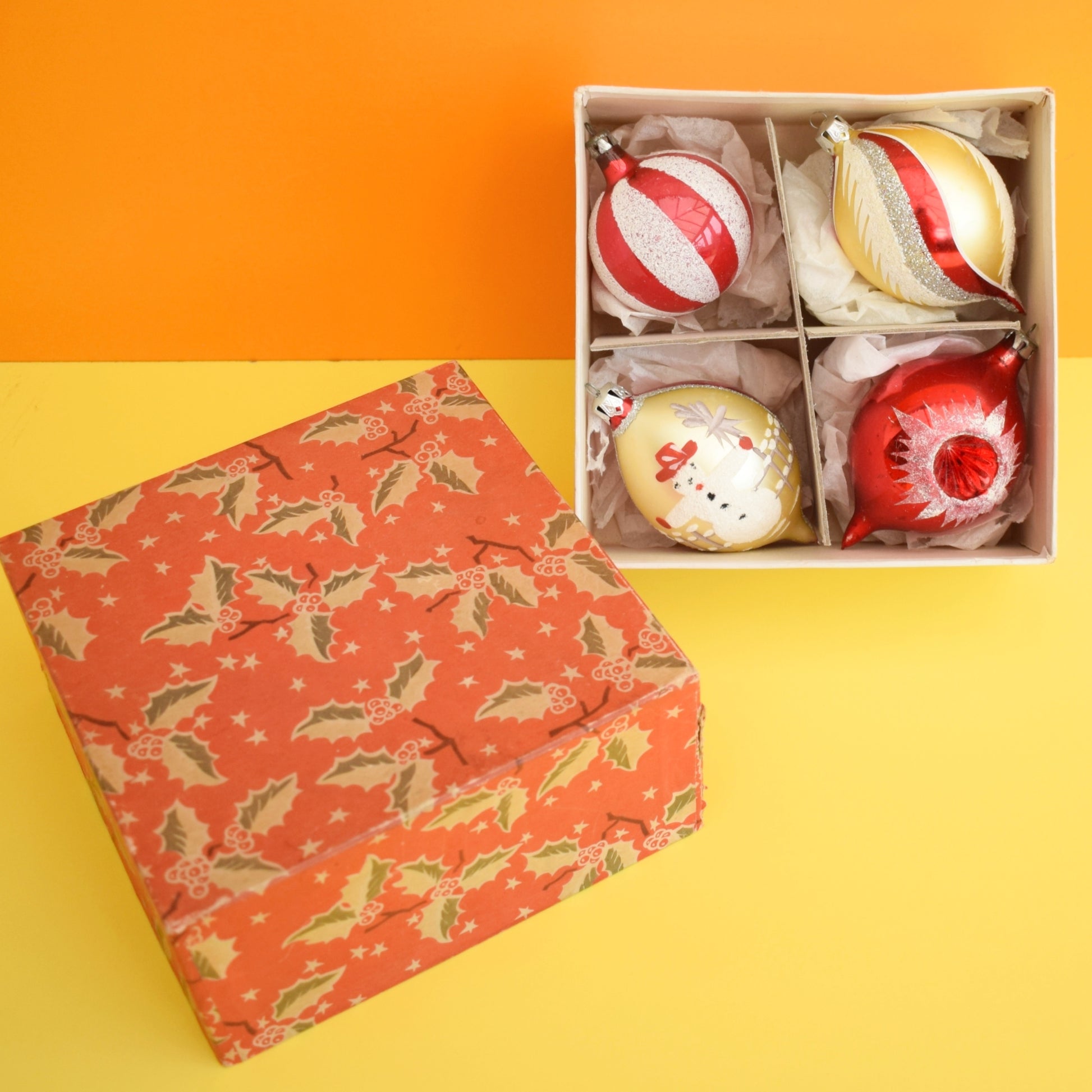 As you see, lovely hand painted colours and designs, the snowman dec has a red and white christmas tree design on the otherside