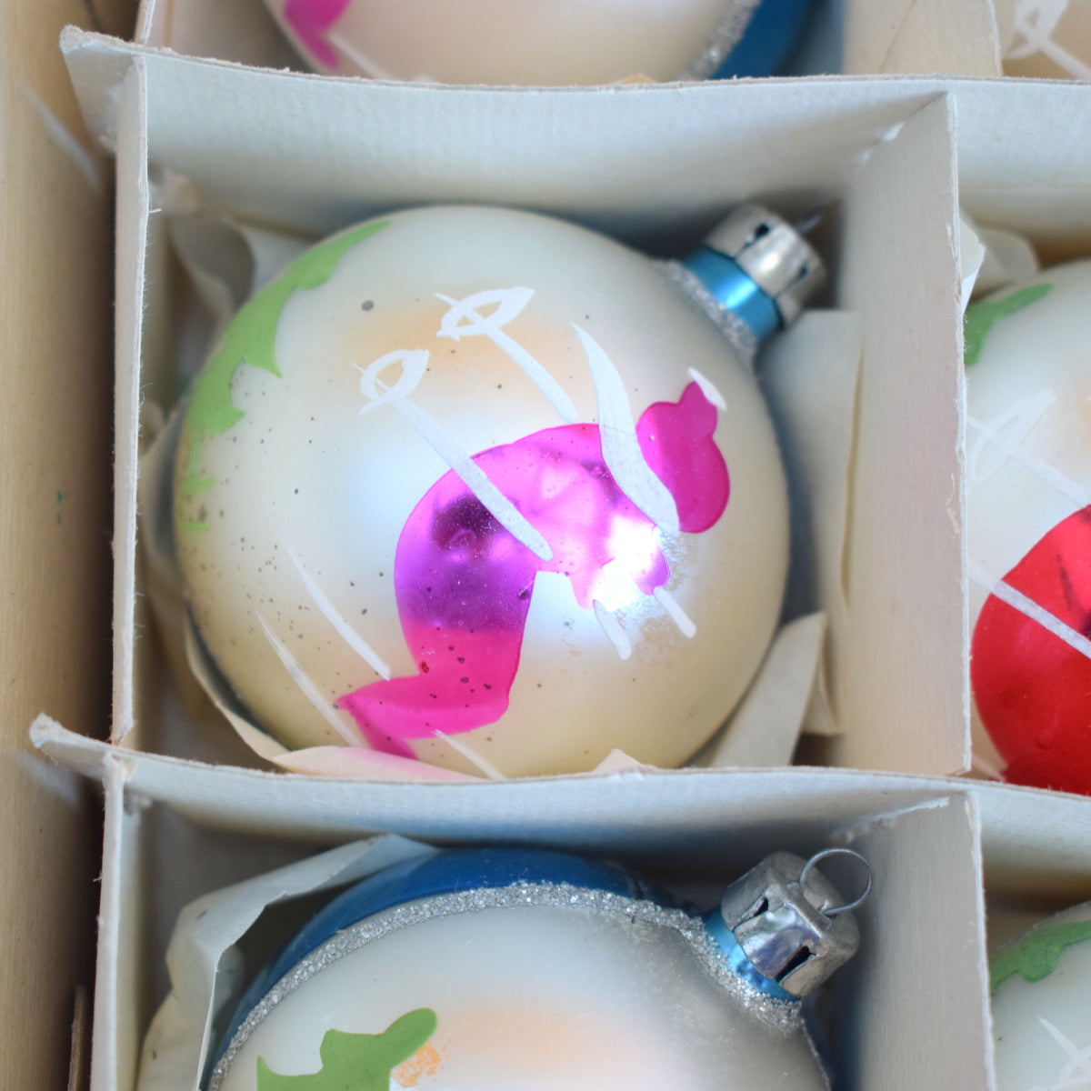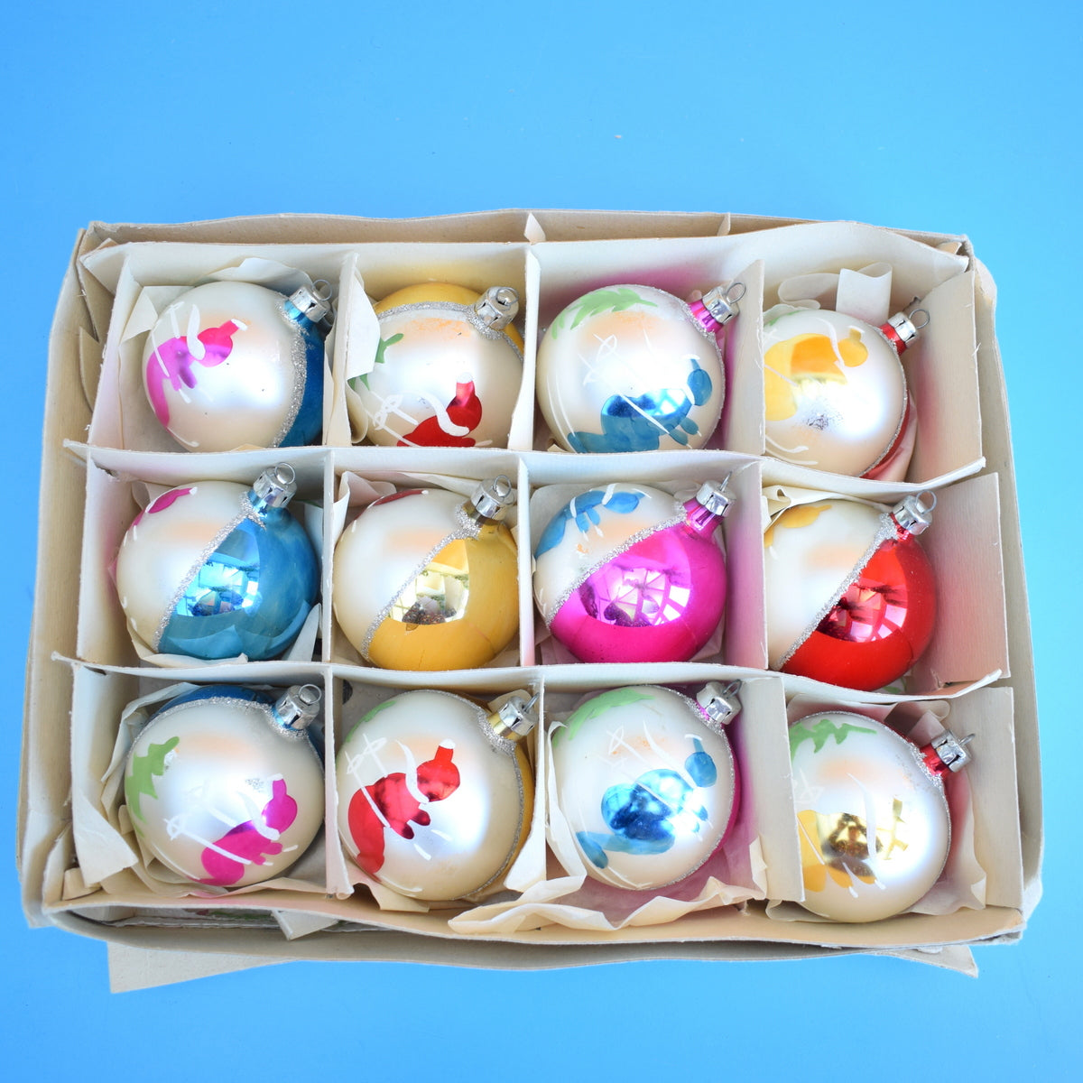 Vintage 1950s Hand Painted Medium Glass Christmas Baubles- Skiers