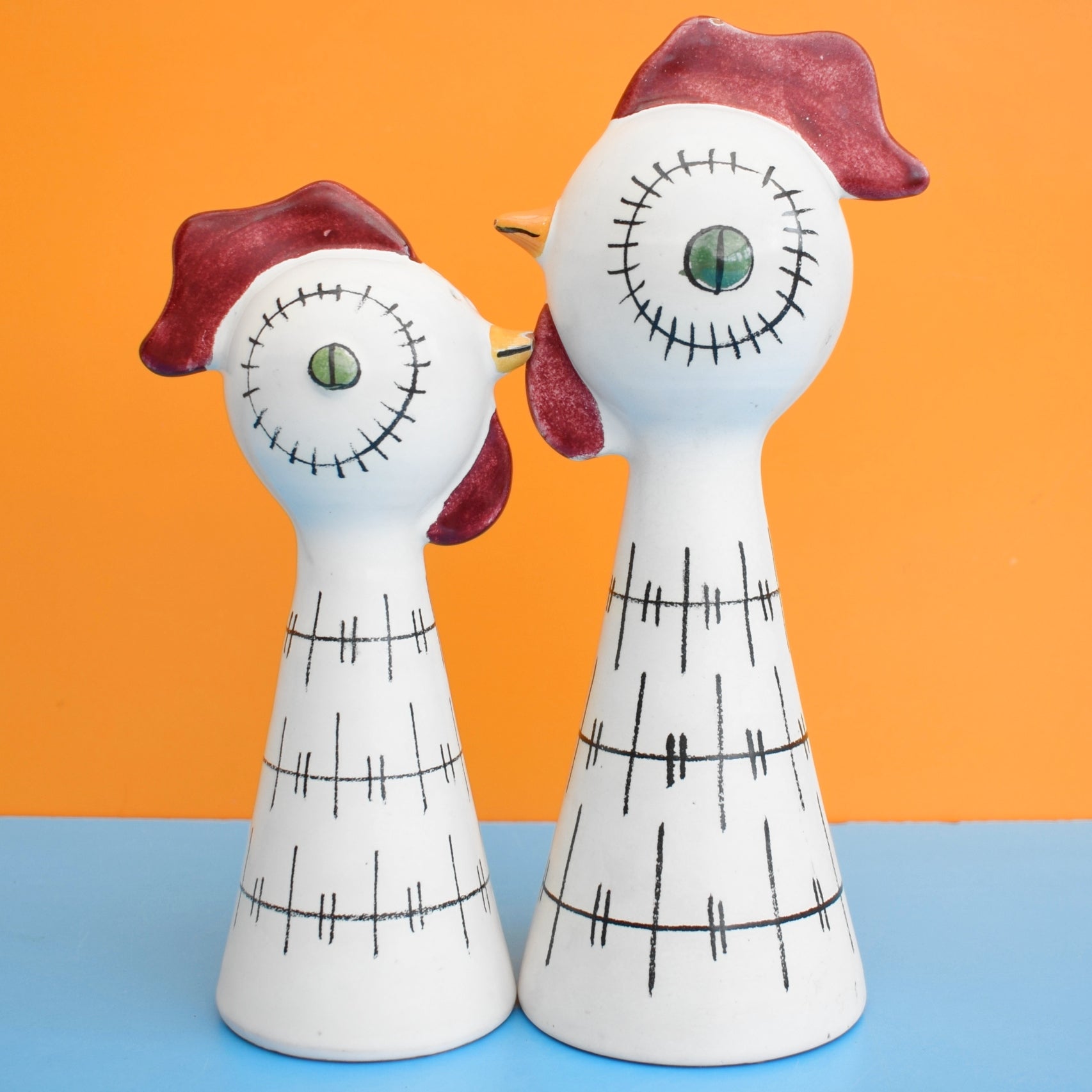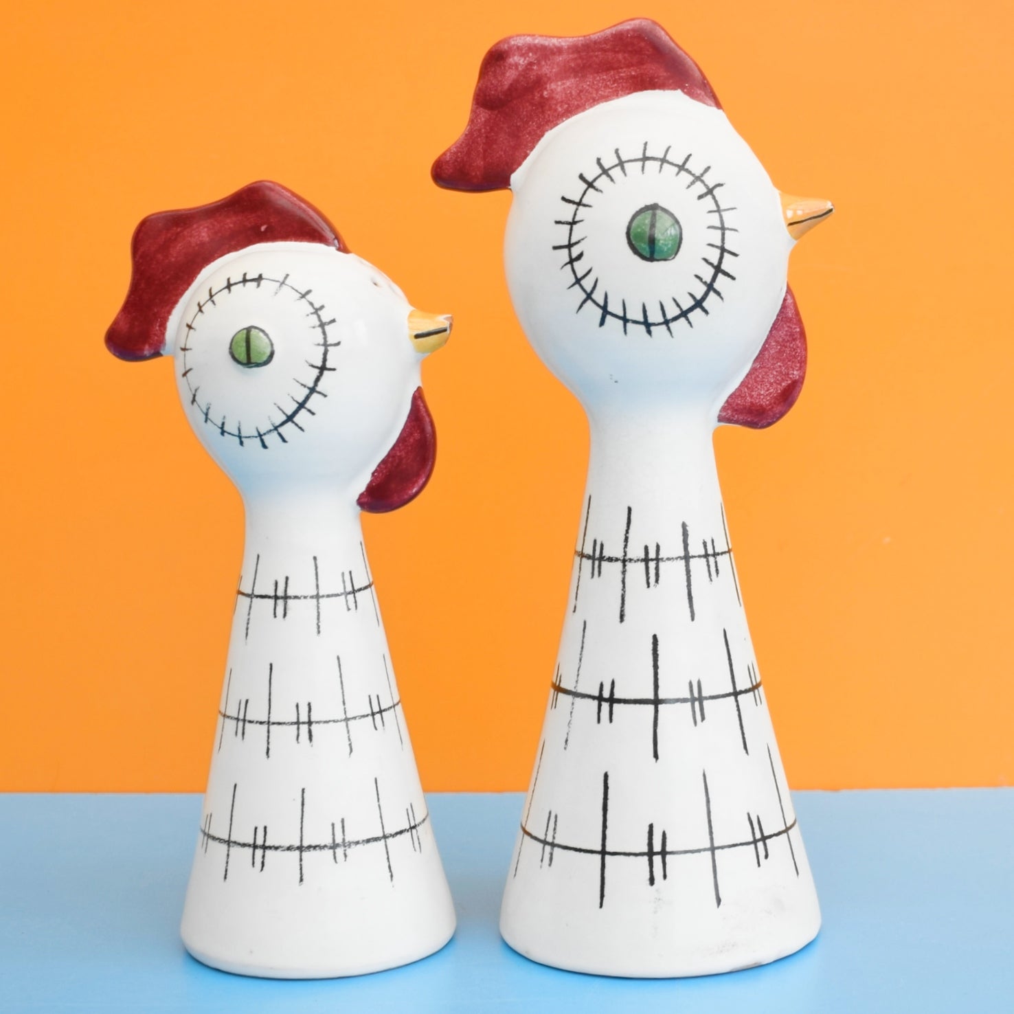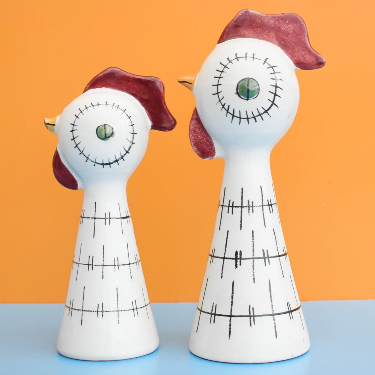 - Design Bitossi for Montrose — stylised mid-century rooster and hen forms with painted detail and sculpted combs and beaks