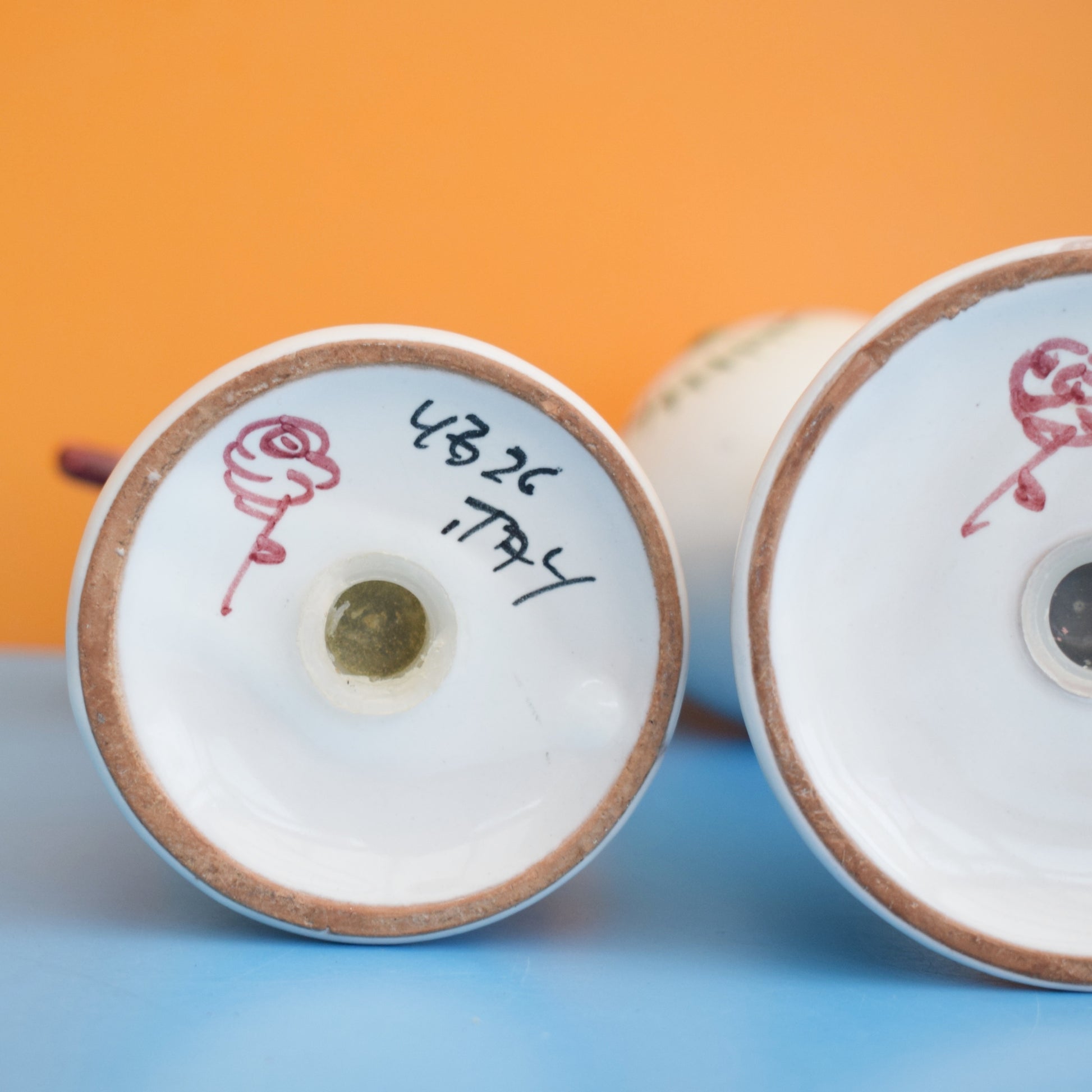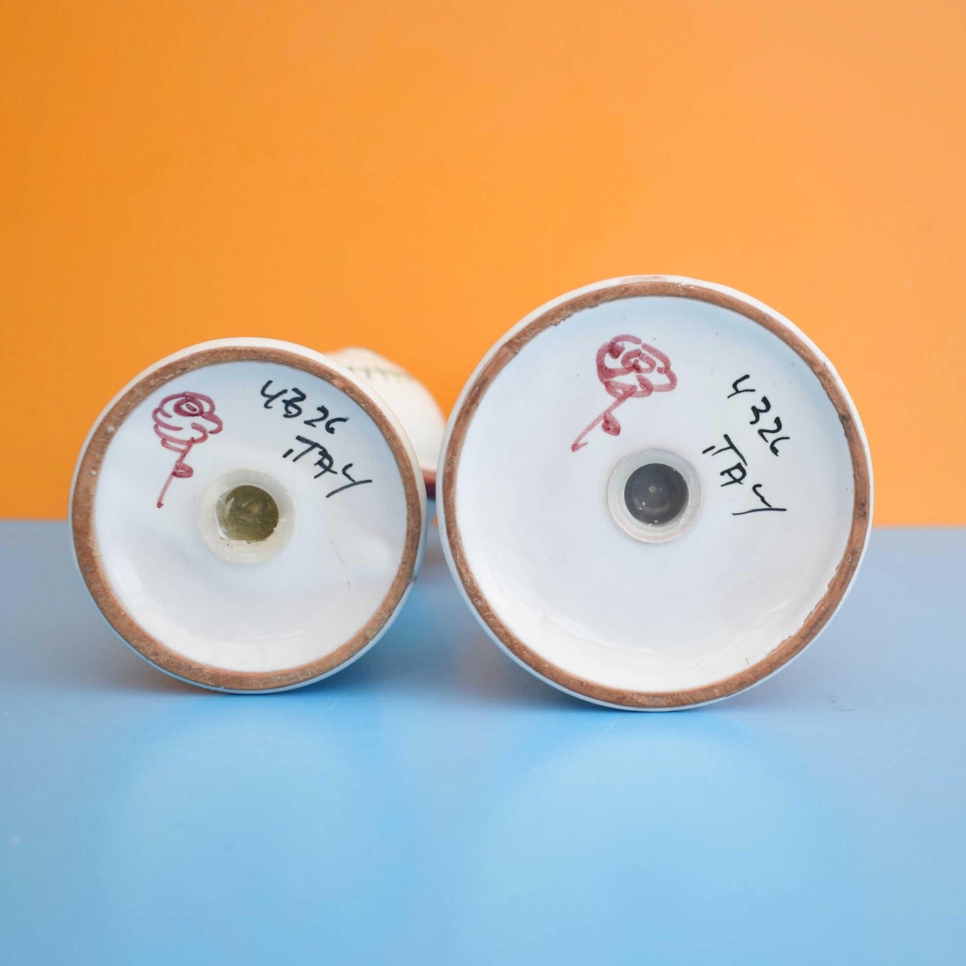 - Features Decorative salt & pepper pots with original stoppers underneath; ideal for display or gentle everyday use; collectible Italian mid-century ceramics; rare Montrose/Bitossi collaboration; hand-formed shapes and glazed finish