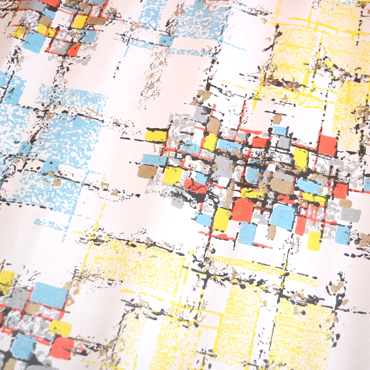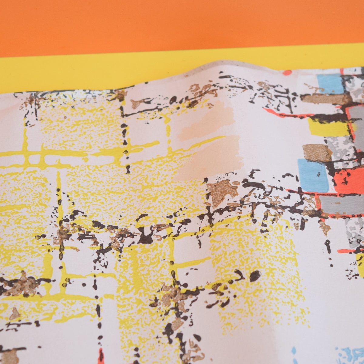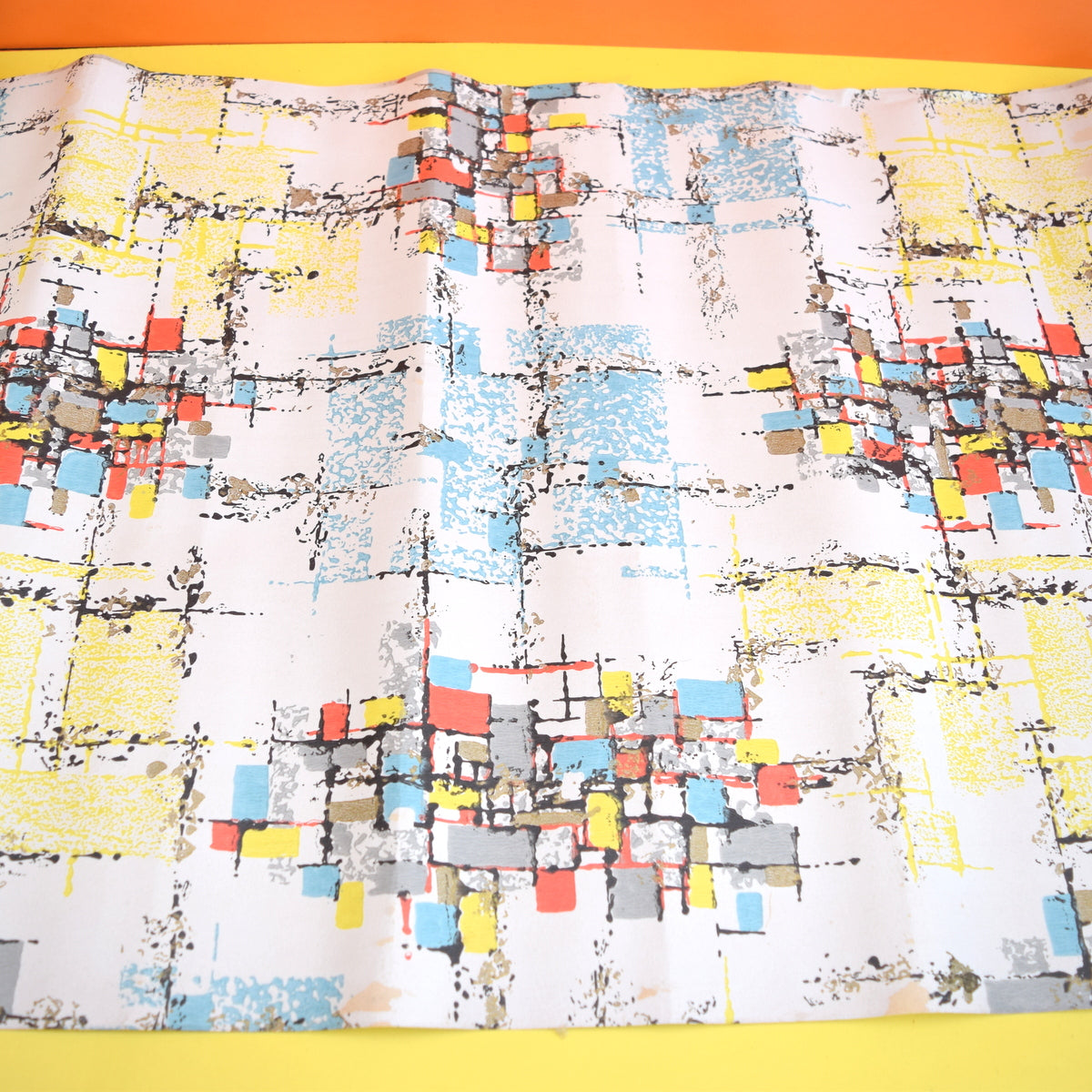 Vintage 1950s Lovely Atomic Vinyl Wallpaper - Black / Blue / Yellow / Red