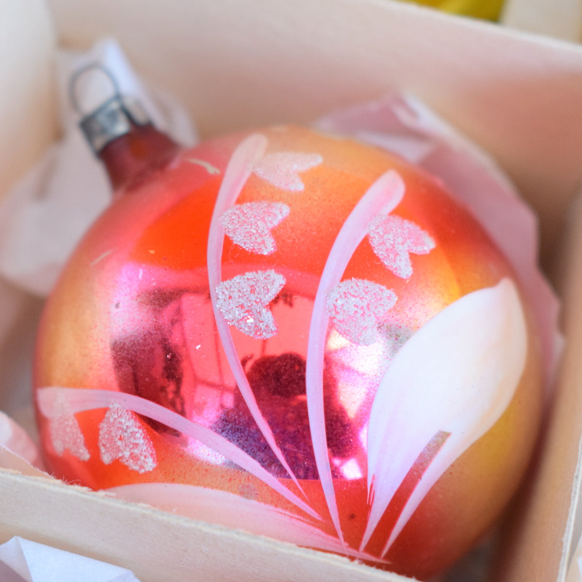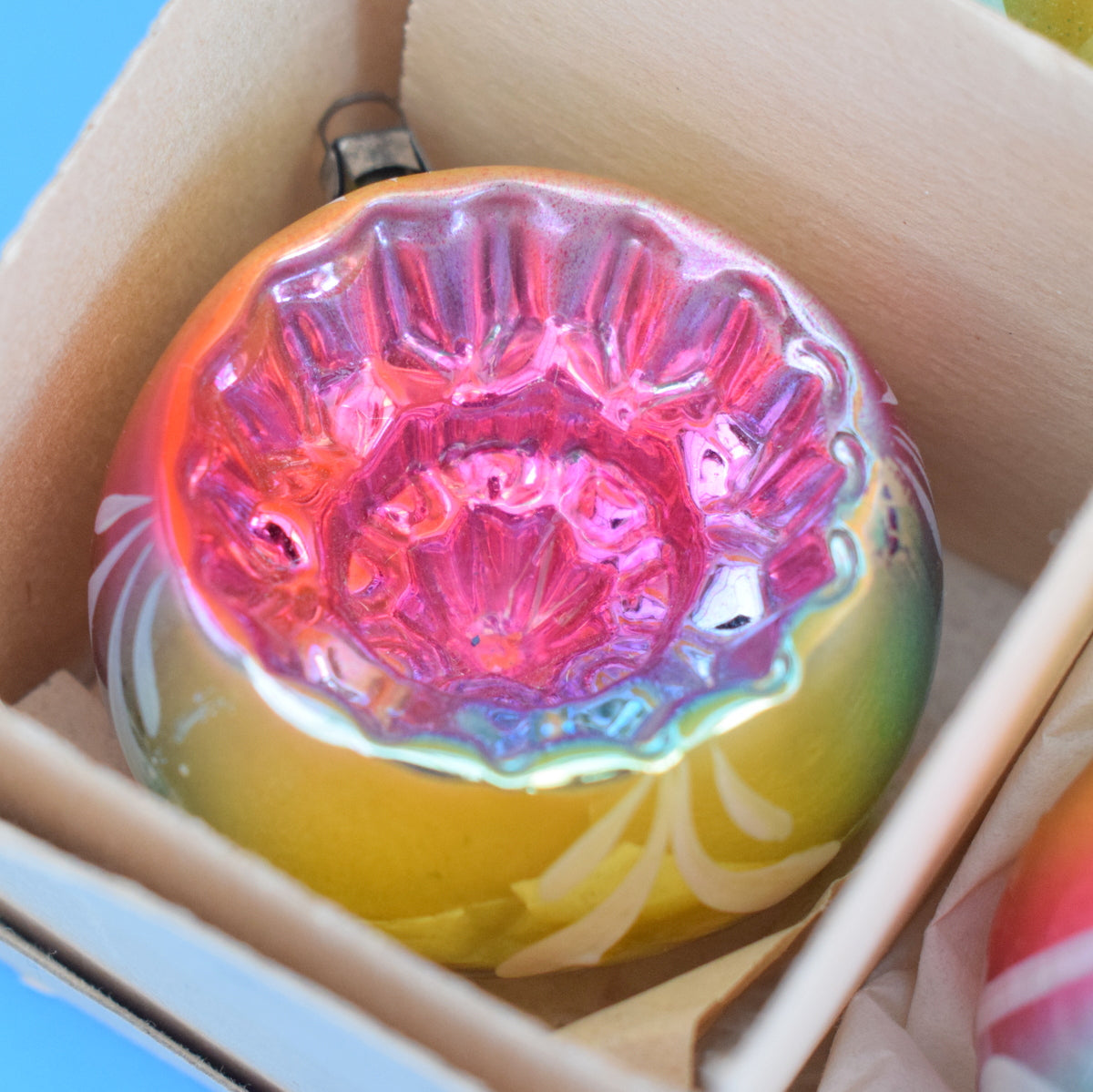 Vintage 1950s Medium German Glass Christmas Baubles- Rainbow