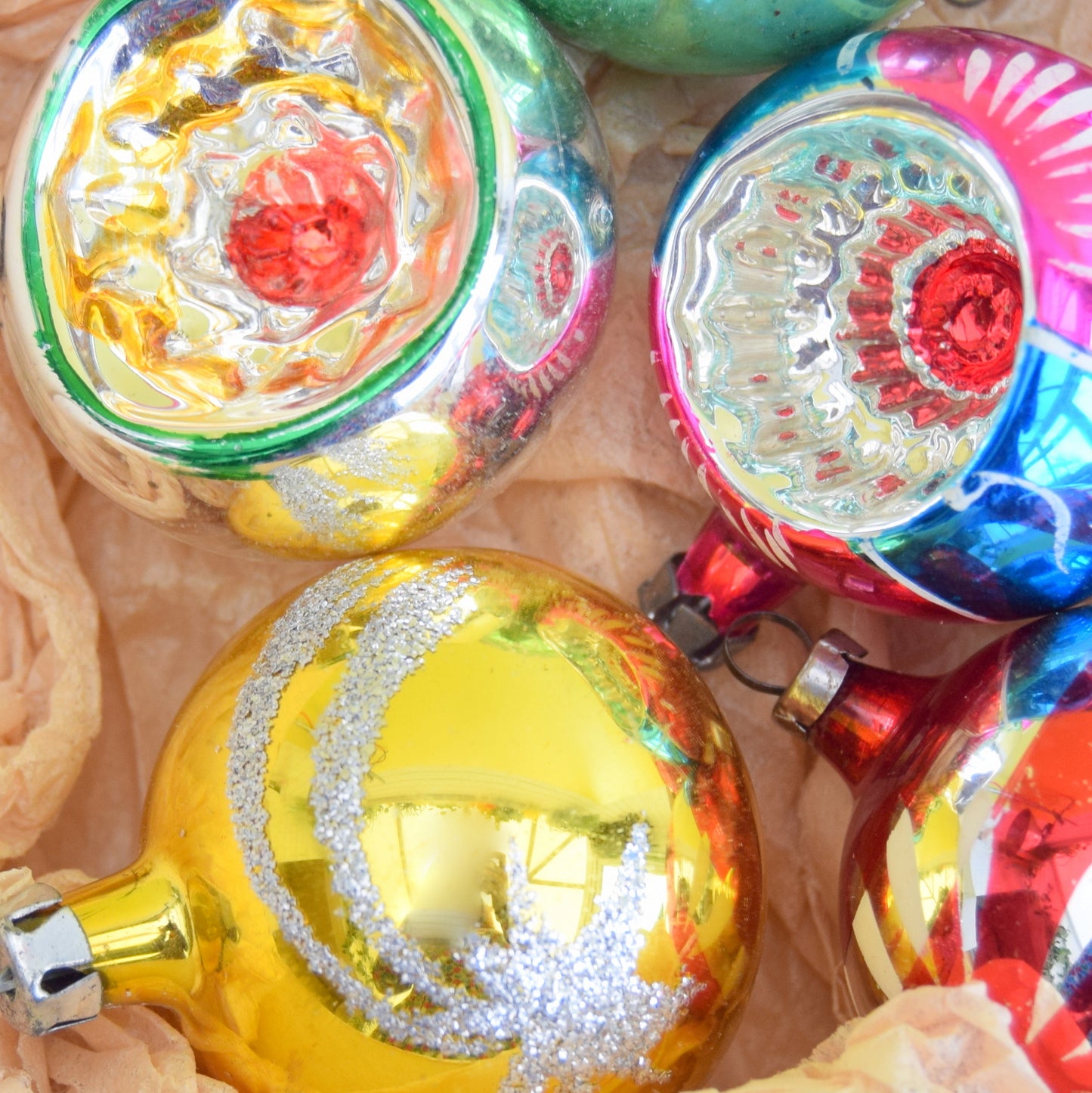 Vintage 1950s Mixed Small Glass Christmas Baubles - Boxed