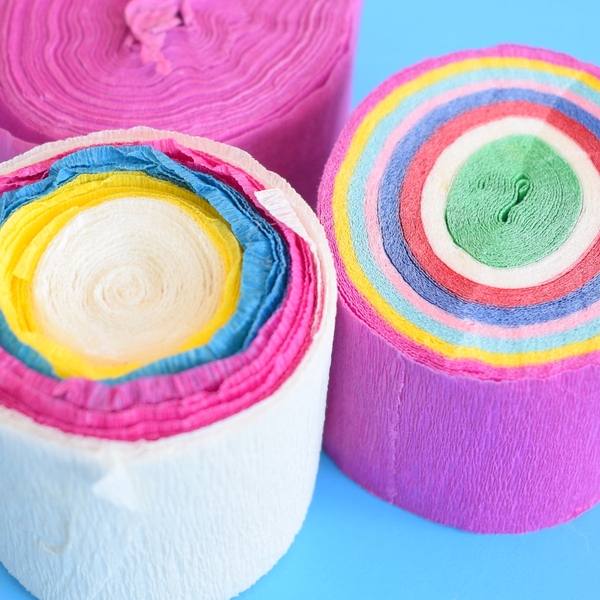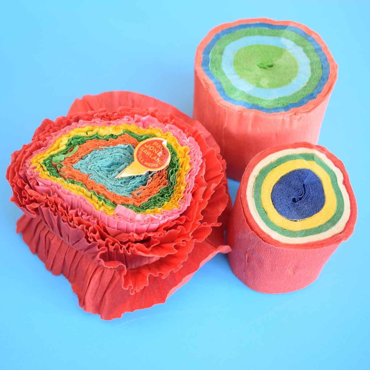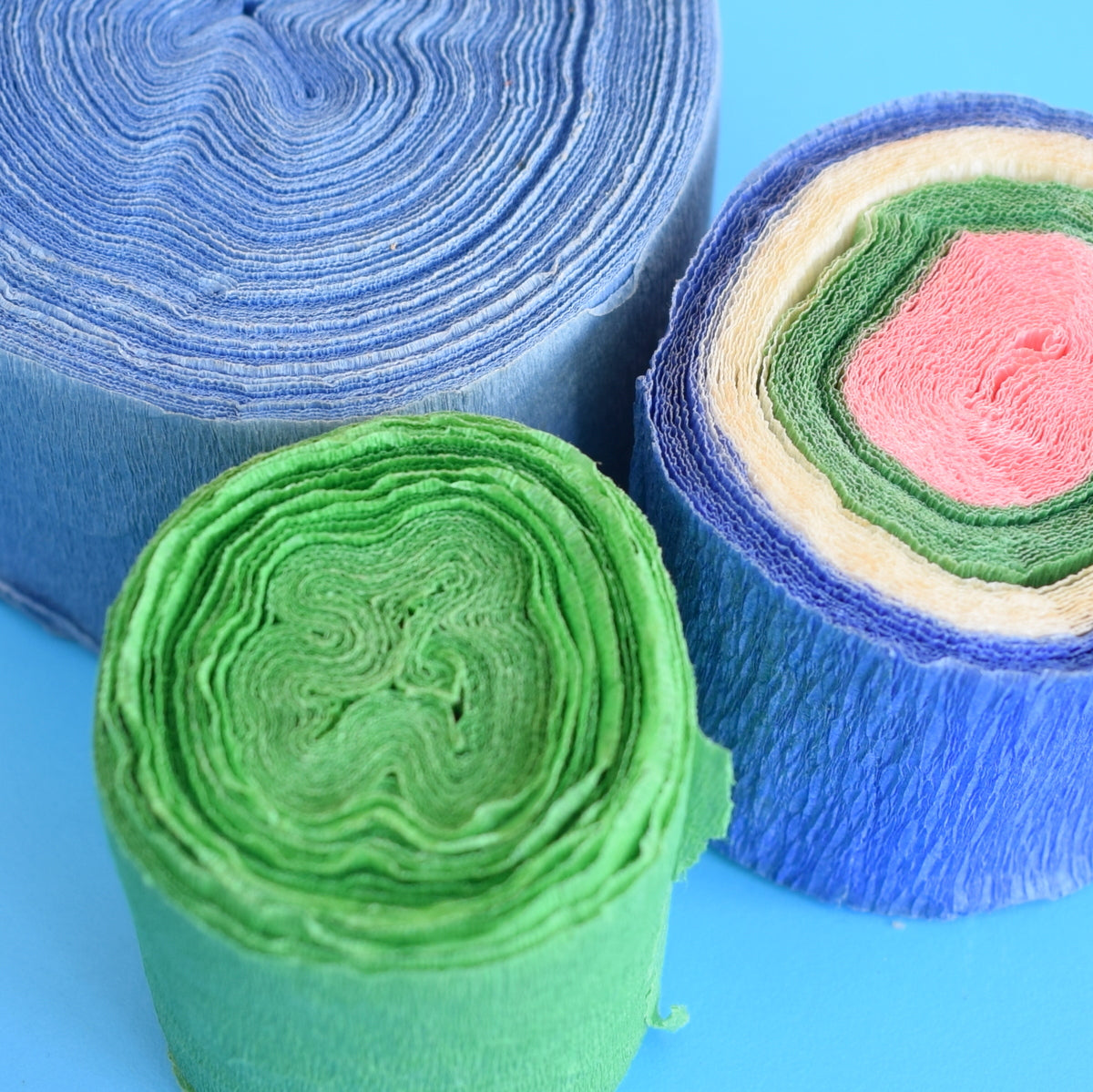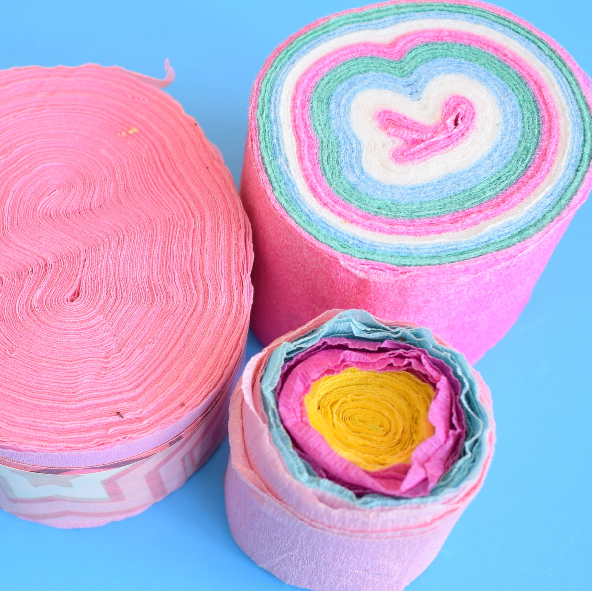 This is a selection of crepe paper streamer rolls, believed to have been made in the 1950s.