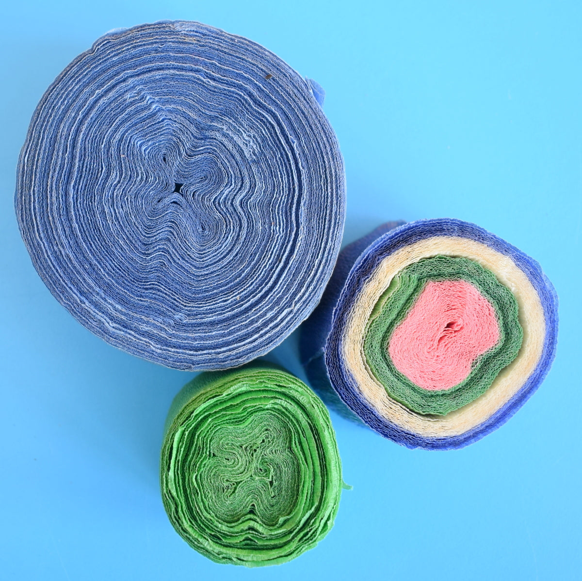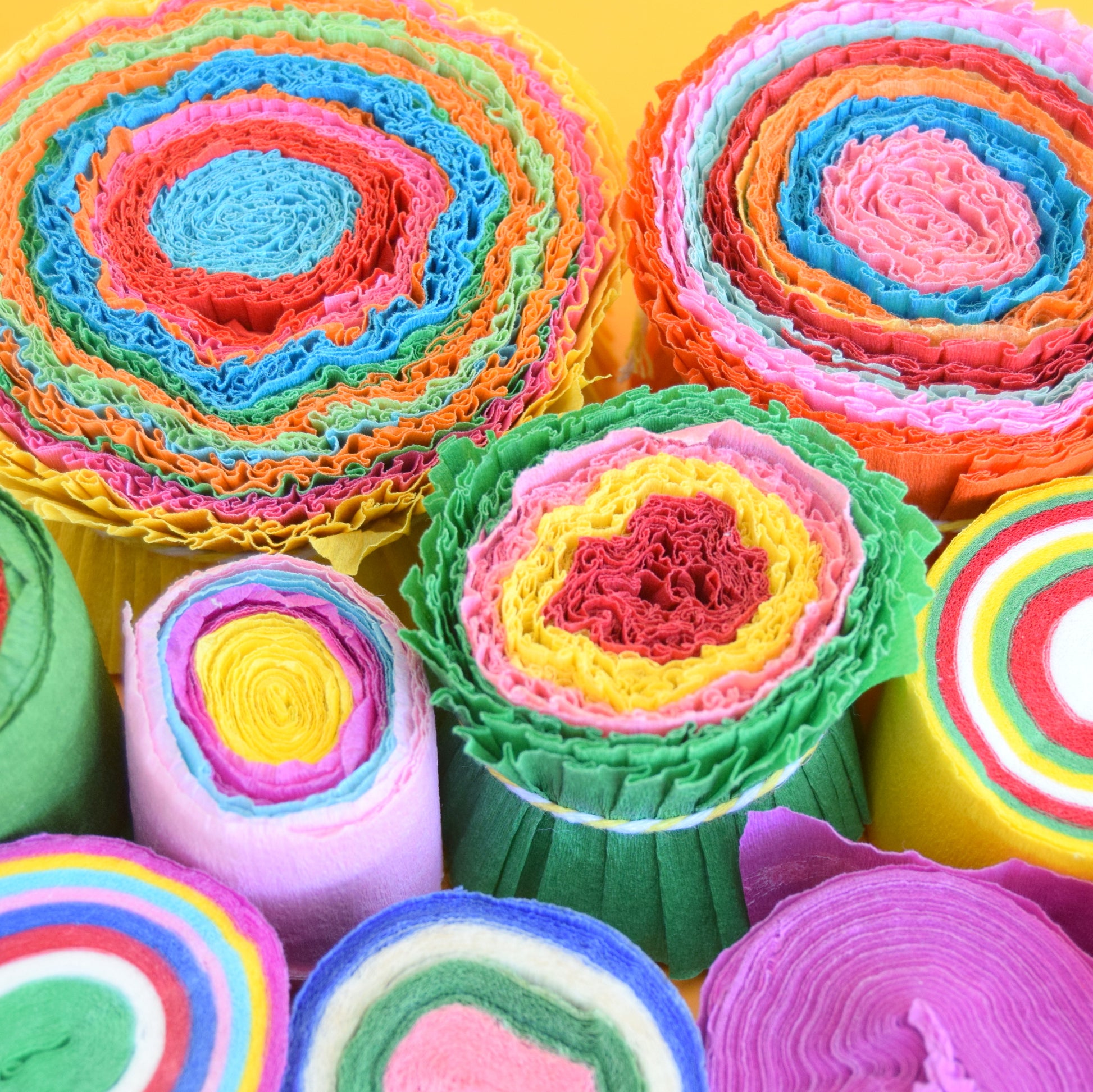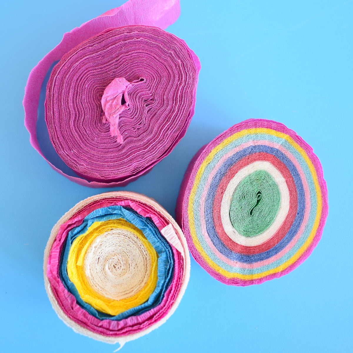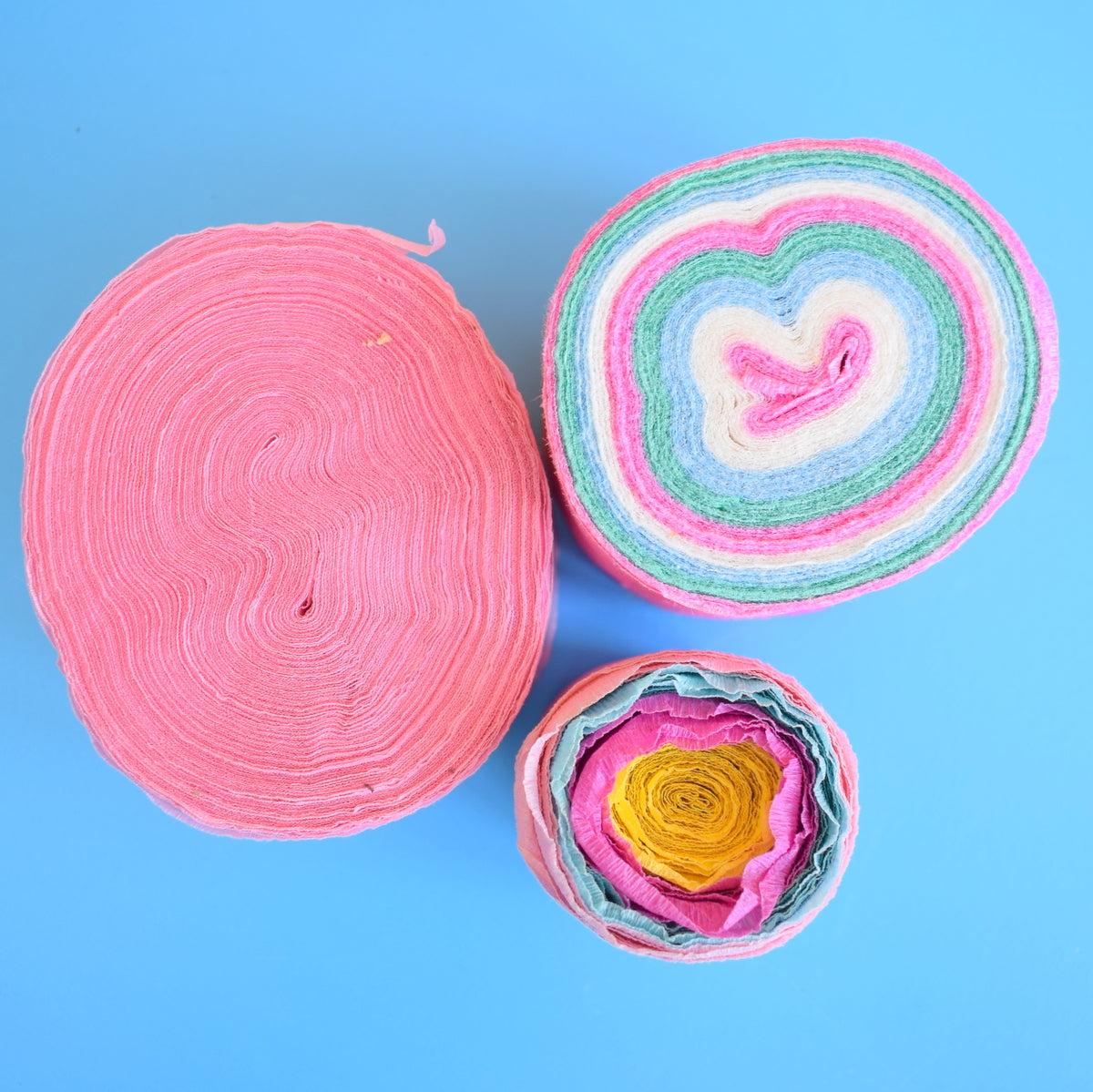 This is a selection of crepe paper streamer rolls, believed to have been made in the 1950s.