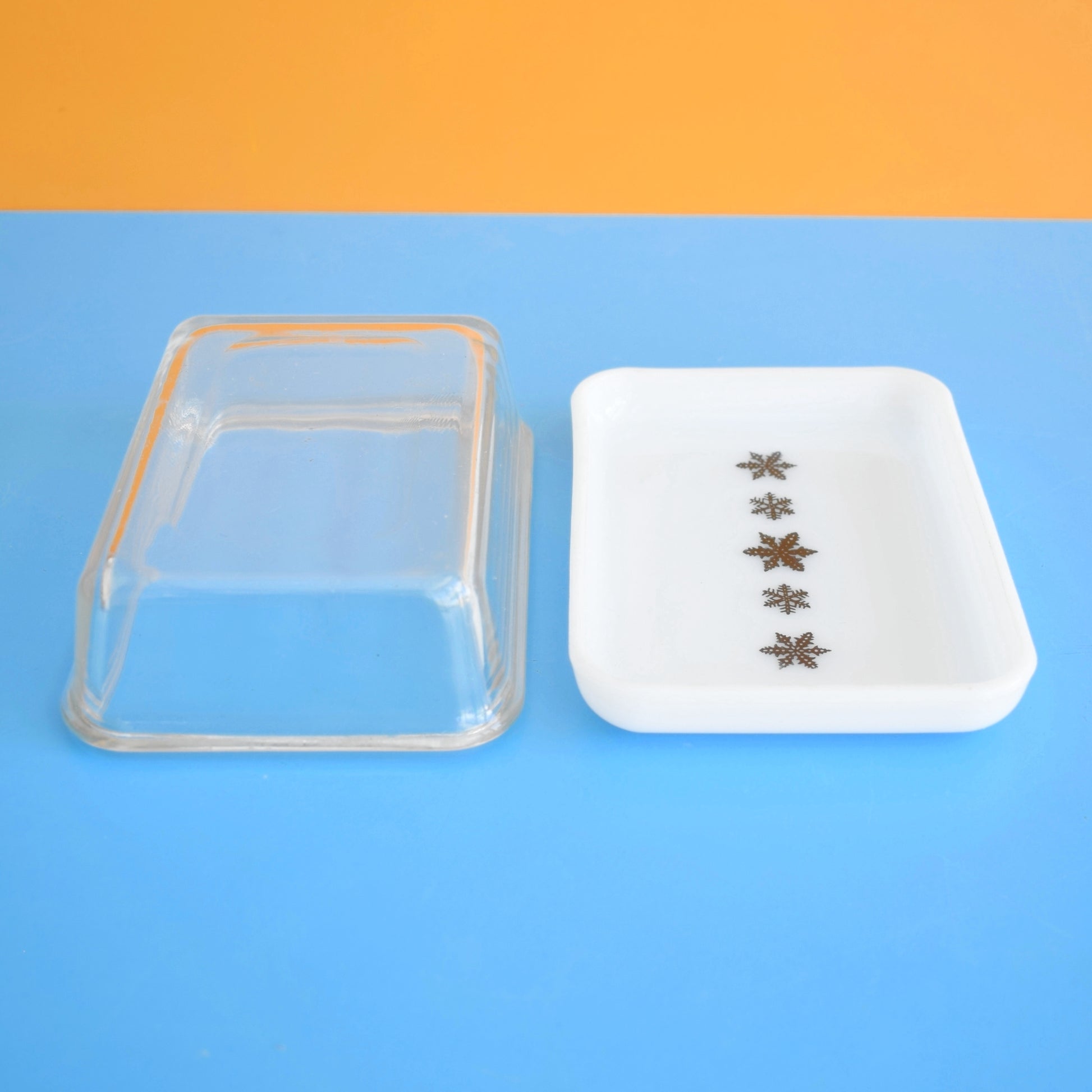 Vintage 1950s Pyrex - Rare Snowflake Butter Dish With Lid - Monochrome