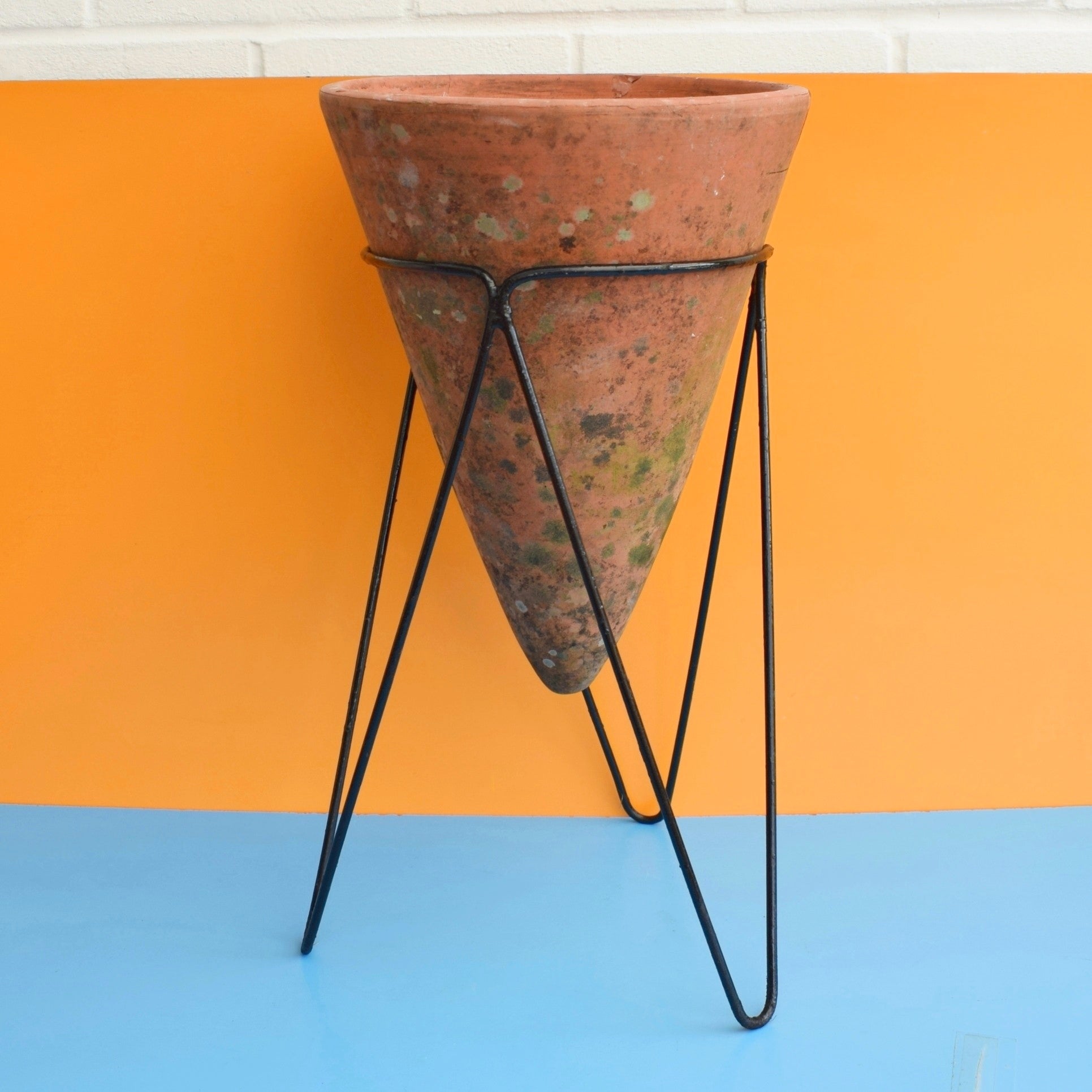 - Design Similar to Terence Conran / Midcentury Modern — conical terracotta pot with black hairpin stand, Plant Life tableware aesthetic