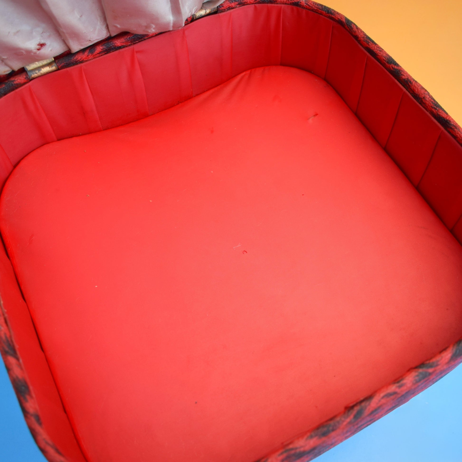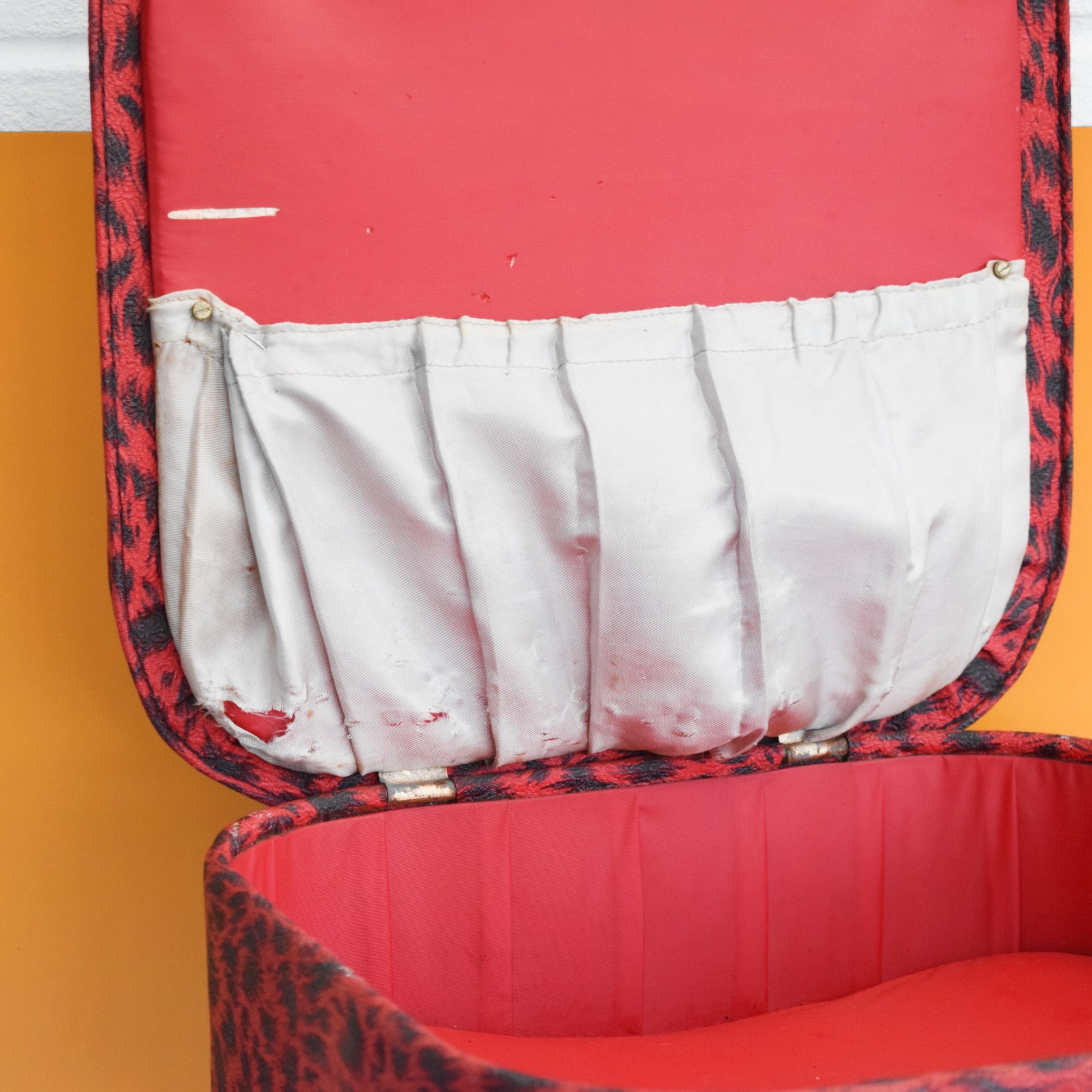 Vintage 1950s Sewing / Hobby Box - Sherborne - Red Leopard Print Vinyl