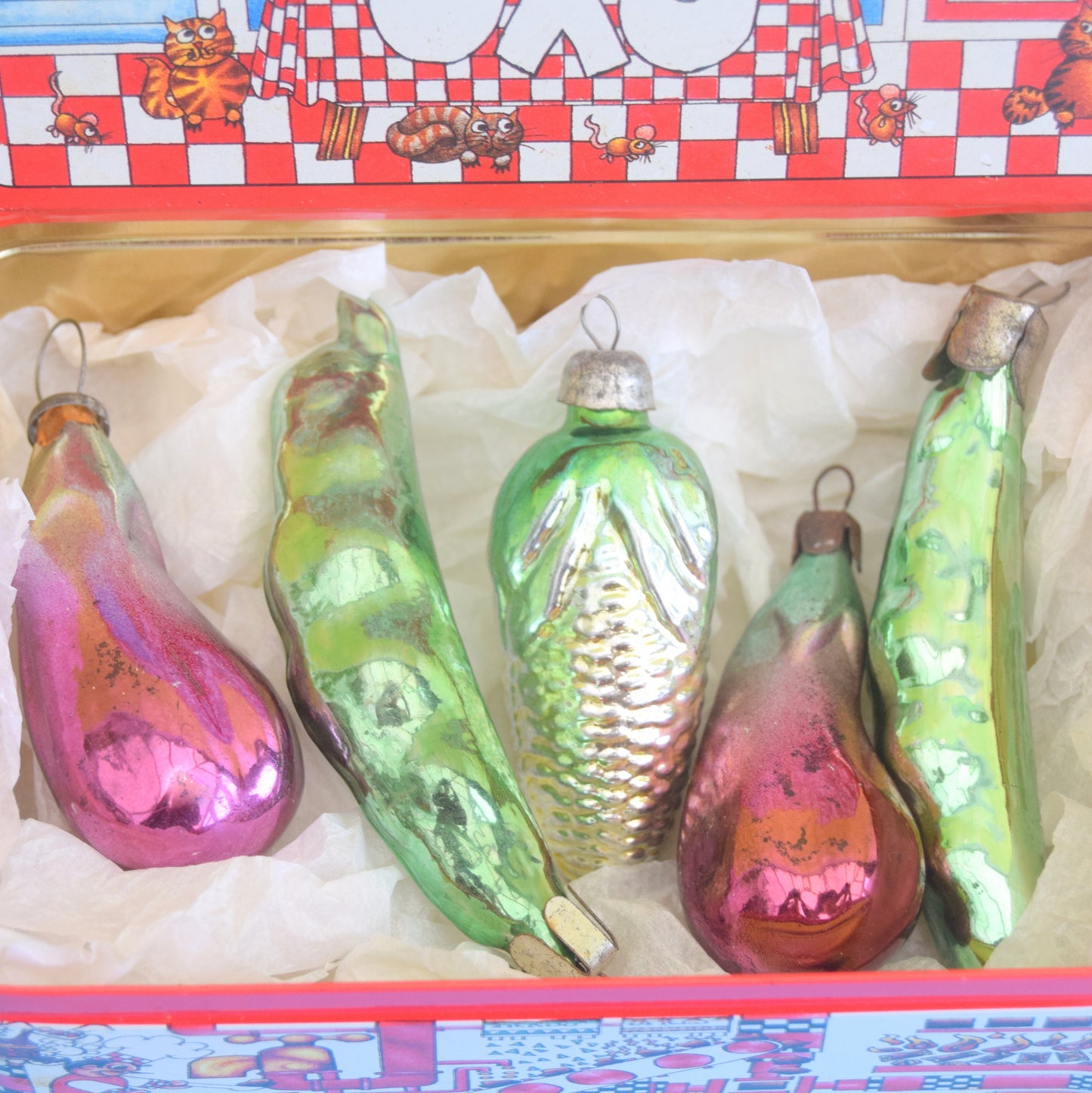 Vintage 1950s Smaller Glass Russian Christmas Baubles - Vegetables