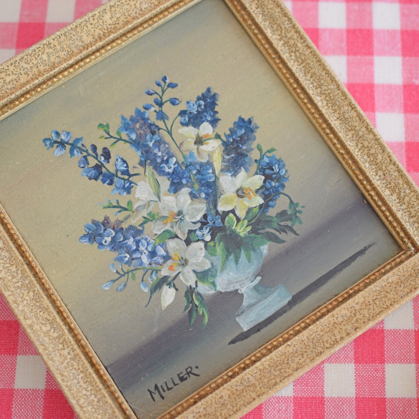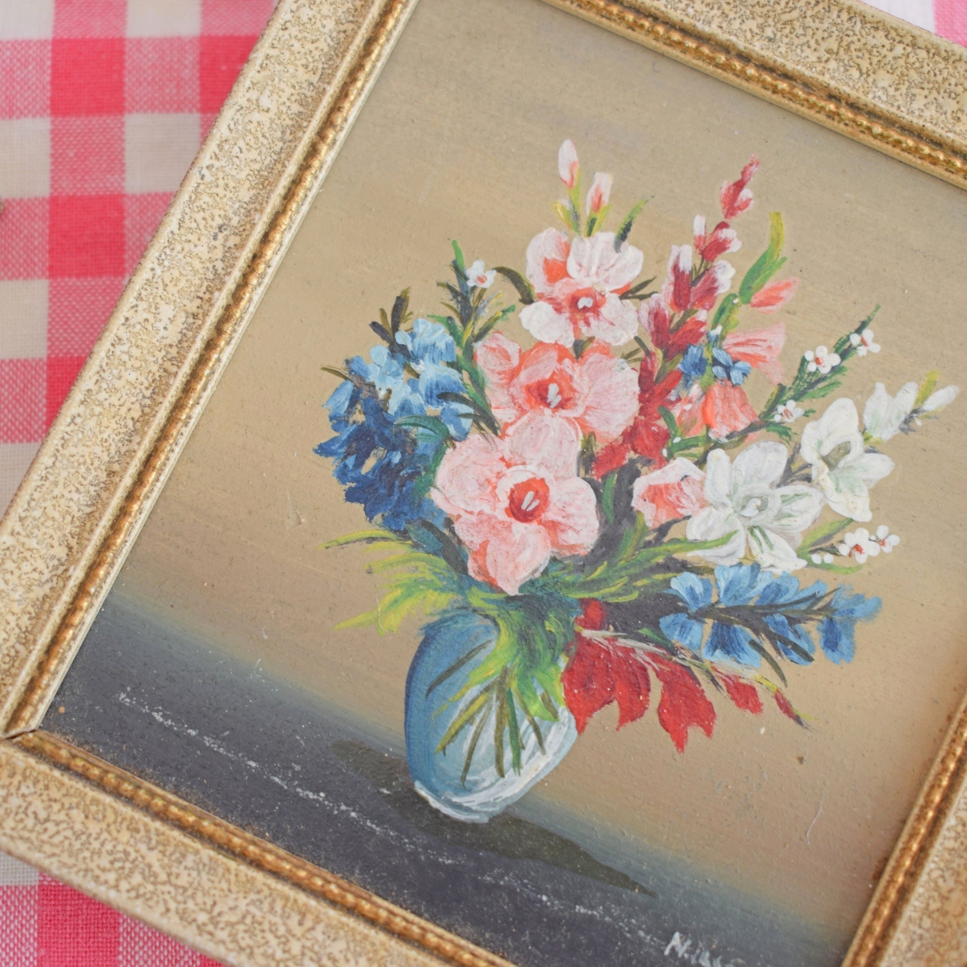 Vintage 1950s Small Oil On Canvas Floral Pictures