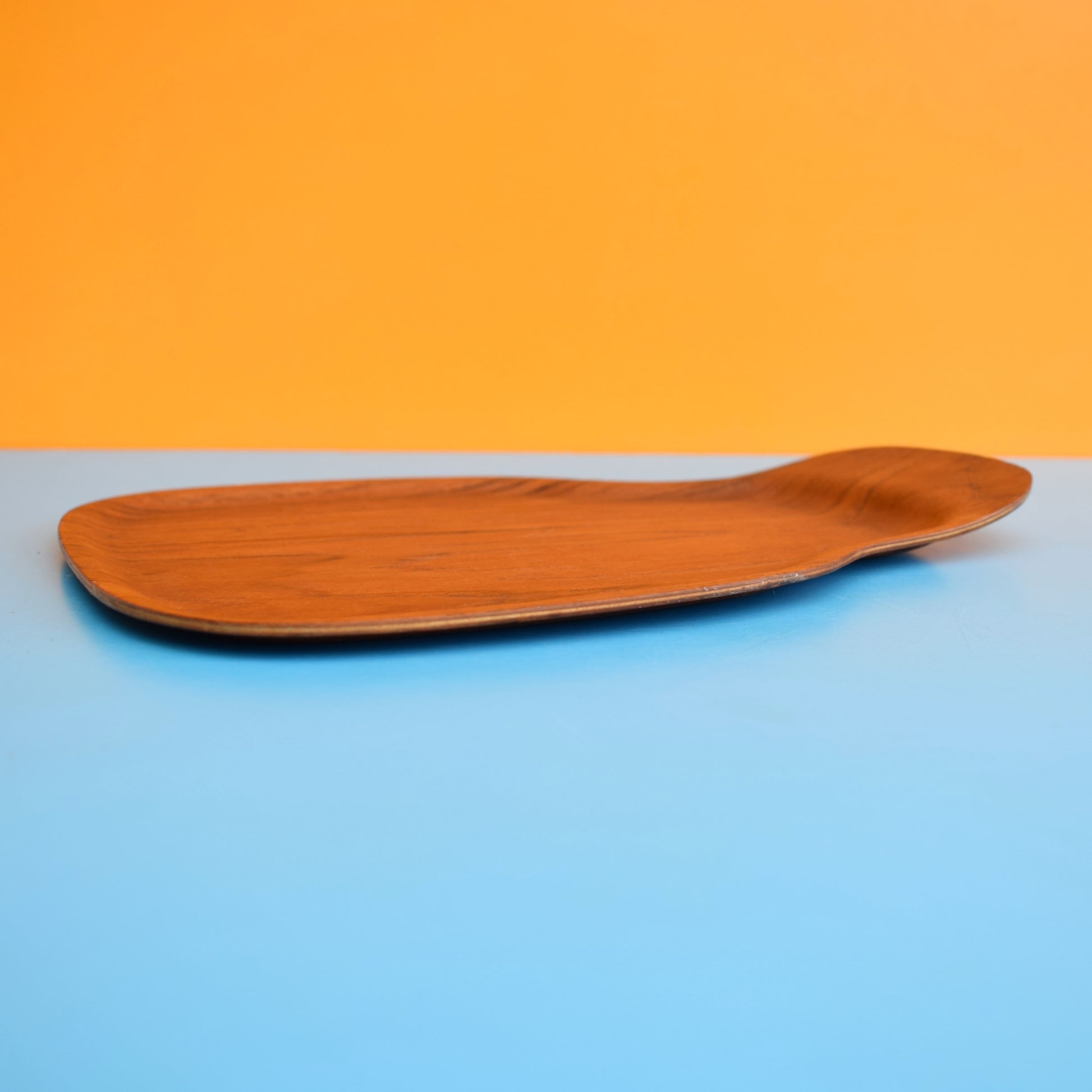 These vintage teak plywood trays by ARY Nybro deliver authentic mid‑century character: a rich, natural patina and lightweight construction that makes them practical for everyday serving or striking when used as wall art. Each tray shows age‑appropriate wear that enhances its vintage appeal. The largest tray has a discreet repair at one end that does not affect function and is not obvious in normal use.