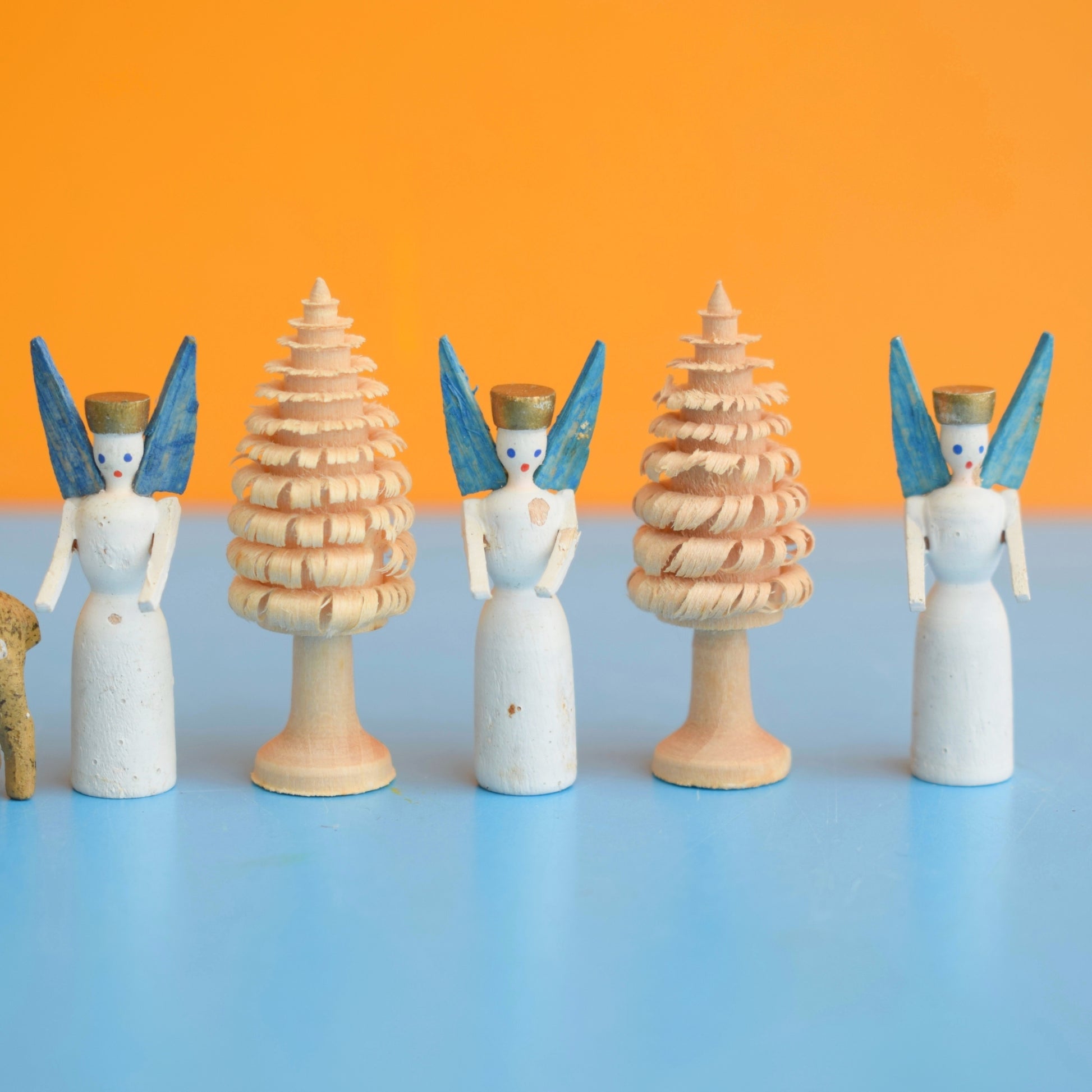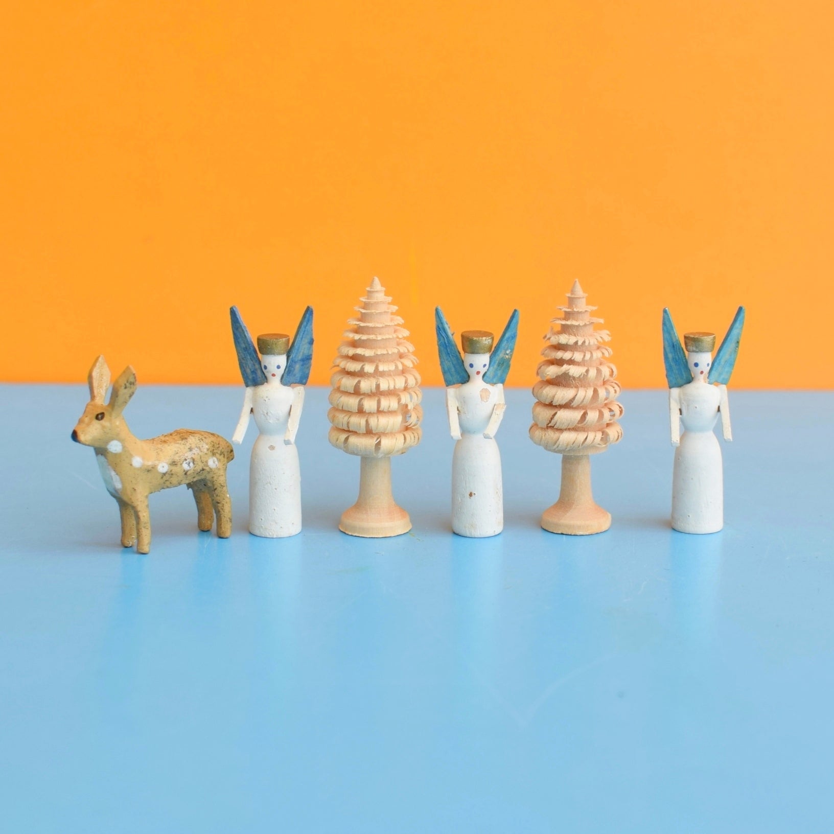 Vintage 1950s Tiny Erzgebirge German Wooden Christmas Trees/ Angels/ Bambi