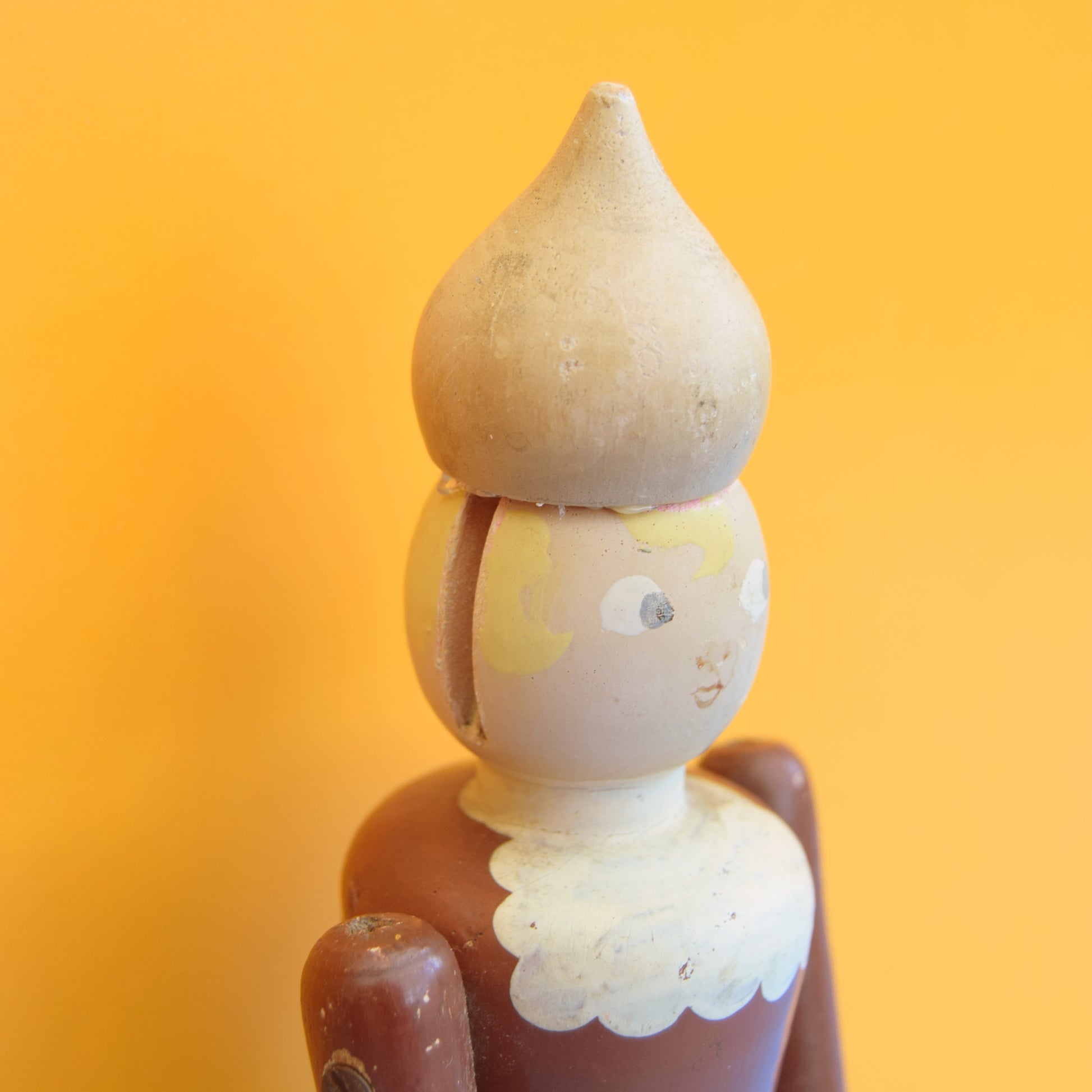 Vintage 1950s Wooden Doll / Figure - Hand Painted