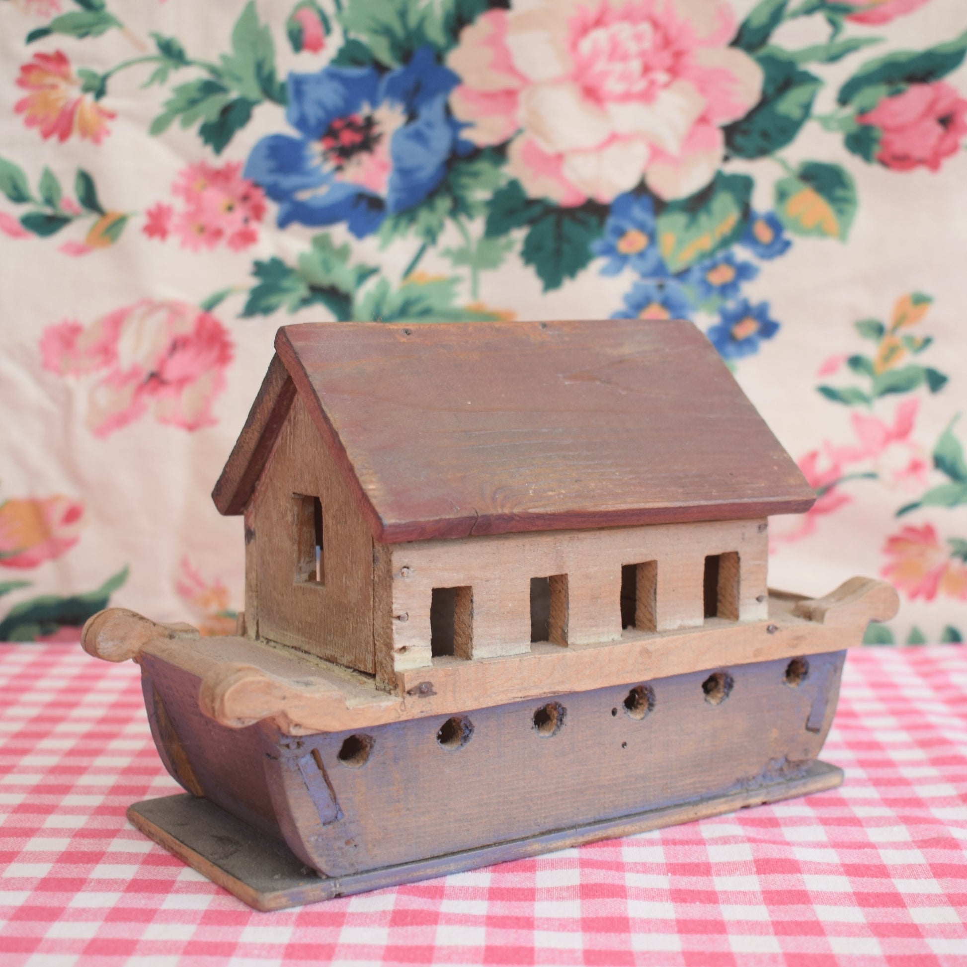 - Design Handmade wooden Noah's Ark toy in folk-art style; no animals included
