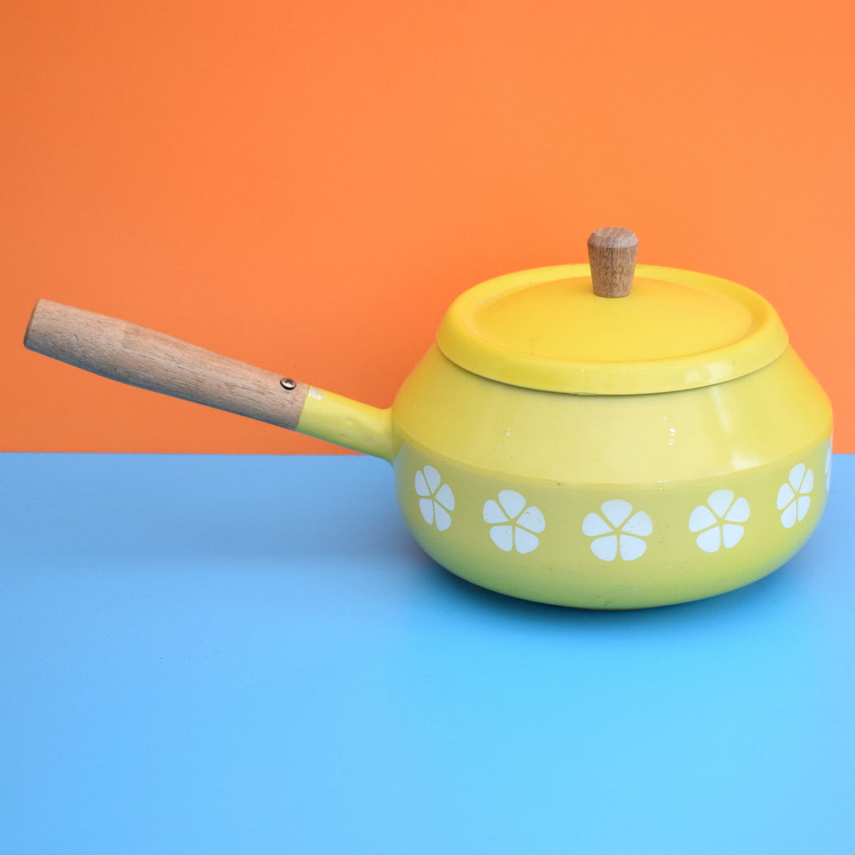Vintage 1960s Aluminium Fondue Pan - Japan - Flower Power - Lime Green