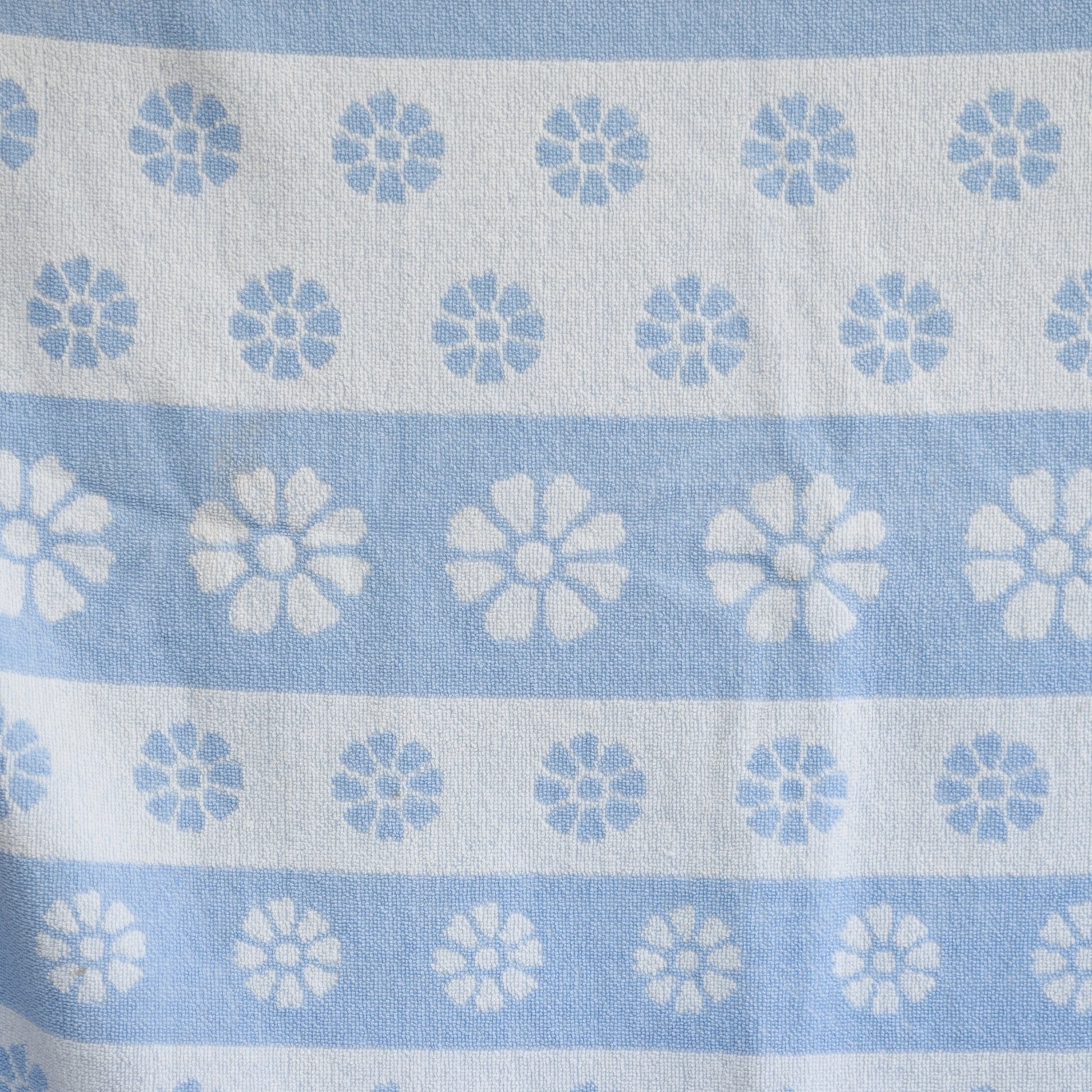 Vintage 1960s Bath Towels - Flowers - Pale Blue & White Pair