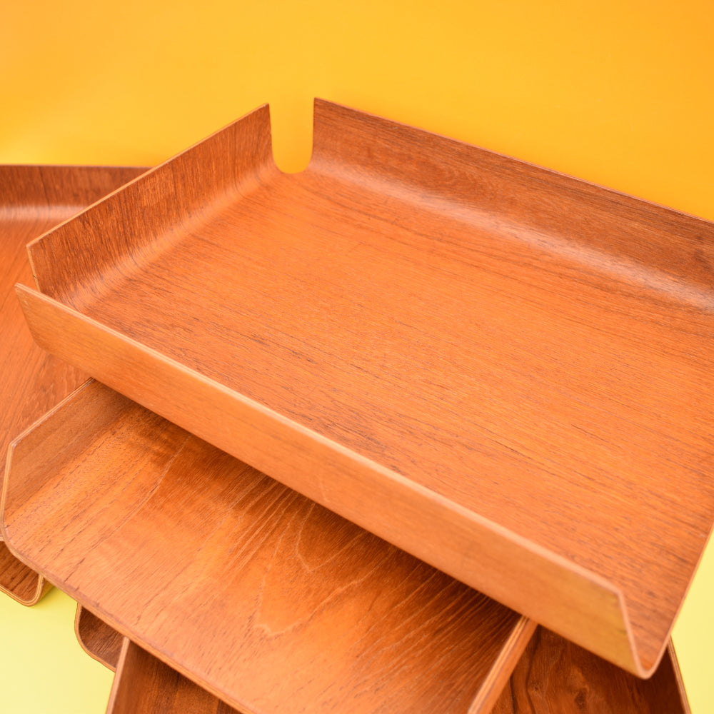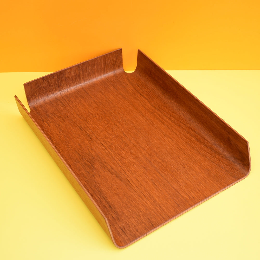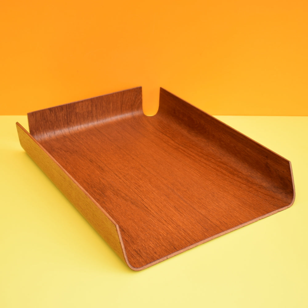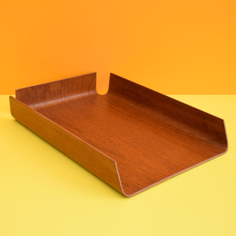 Vintage 1960s Bent Teak Plywood filing Desk Tray - Mallod