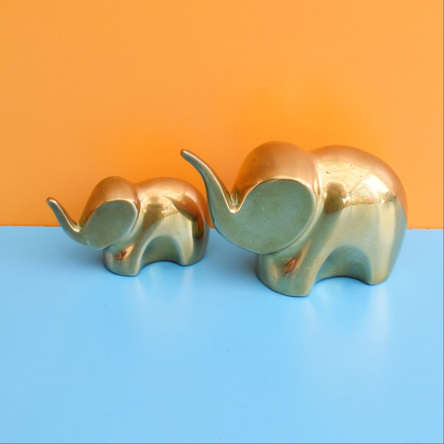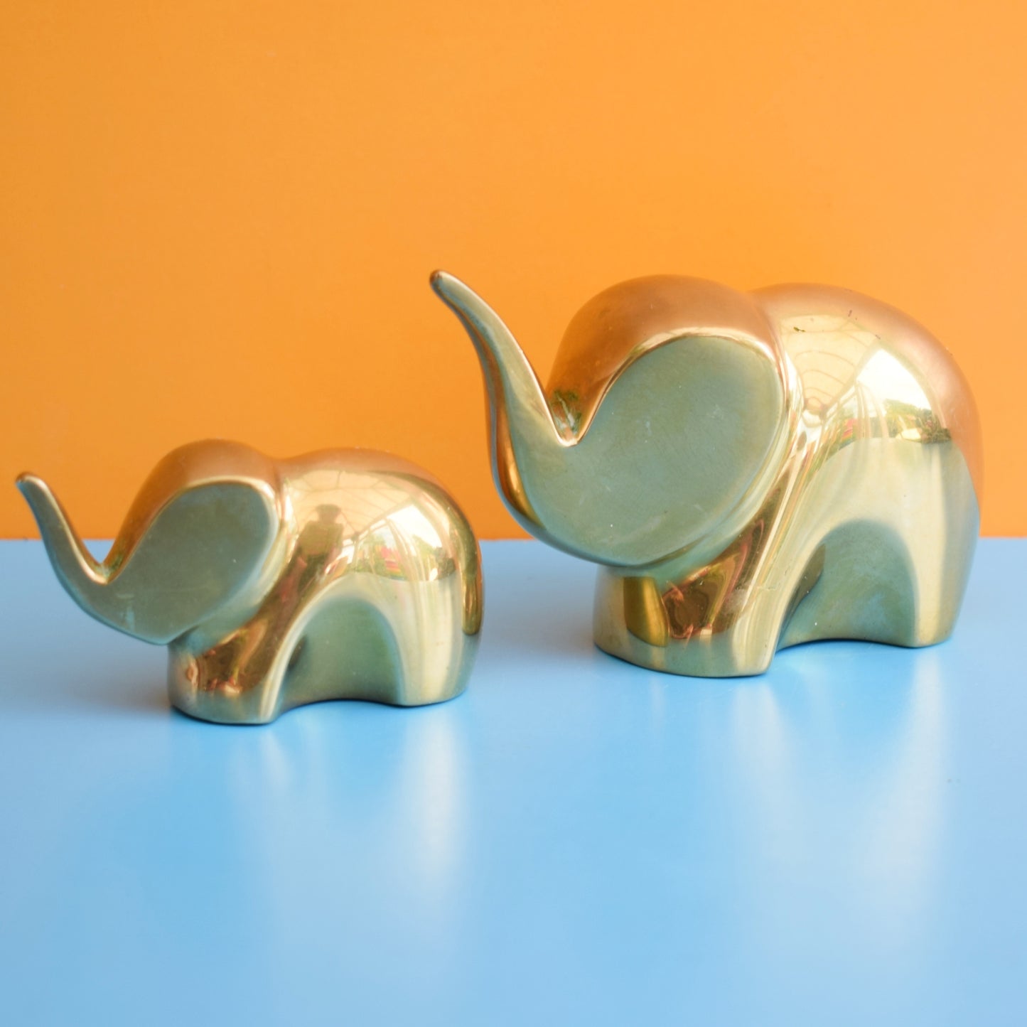 Vintage 1960s Brass Elephant Mummy & Baby