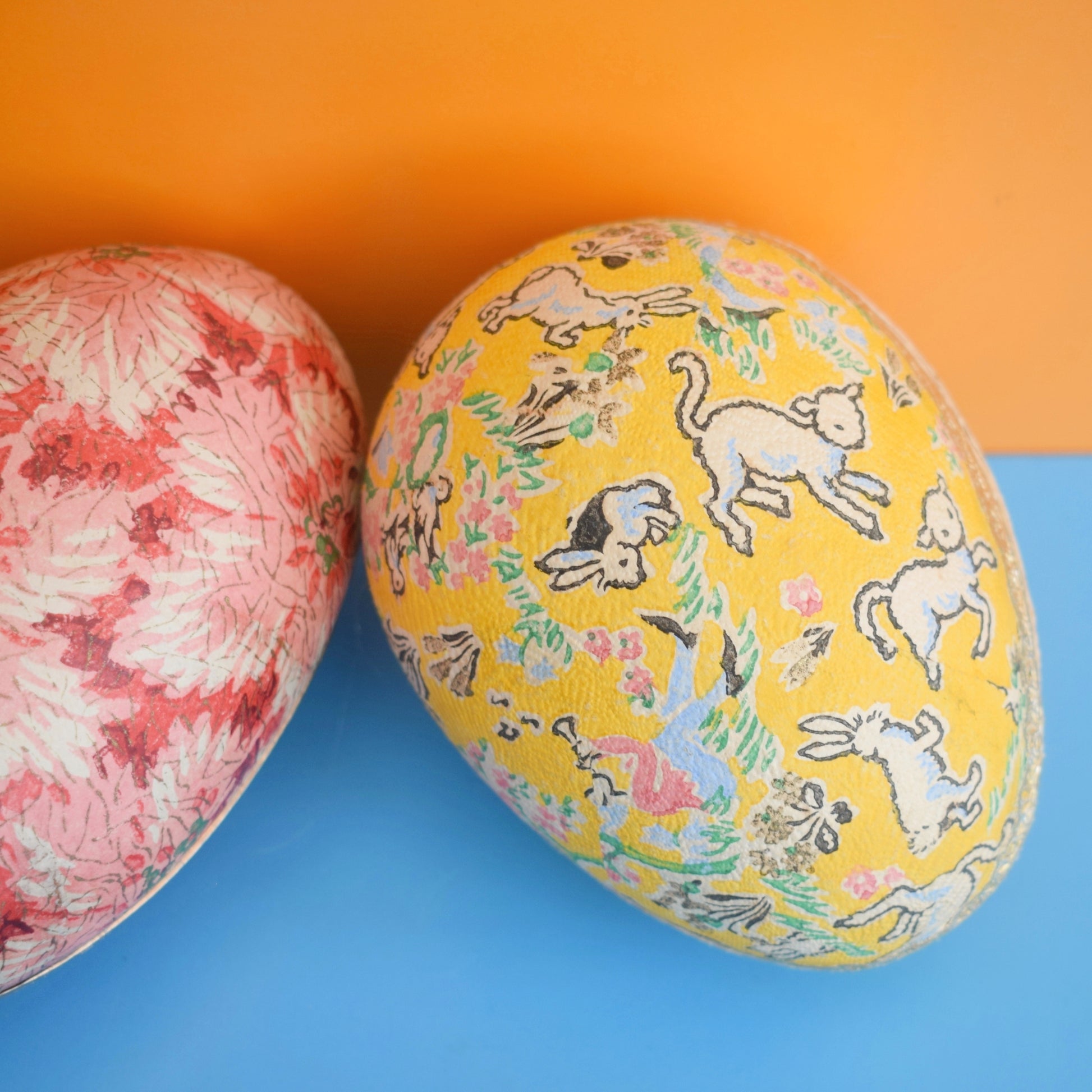 Charming original 1960s cardboard egg-shaped gift boxes — a sweet, nostalgic choice for collectors or anyone wanting retro Easter packaging. Lightweight, decorative and ready to fill with chocolate eggs or a small bunny insert for an authentic vintage presentation.