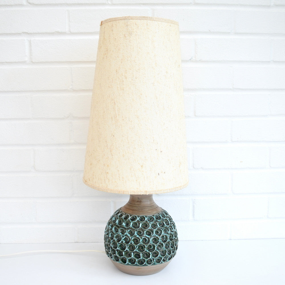 Vintage 1960s Ceramic Italian Lamp & Shade Fratelli Fanciullacci - Blue / Brown