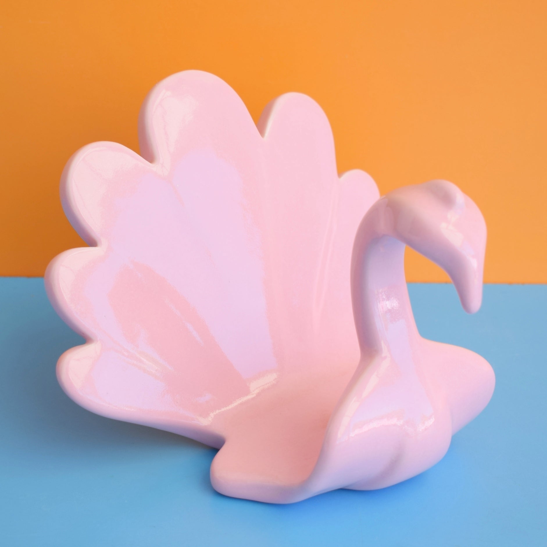Vintage 1960s American Ceramic Peacock Hand Towel Holder- Pink