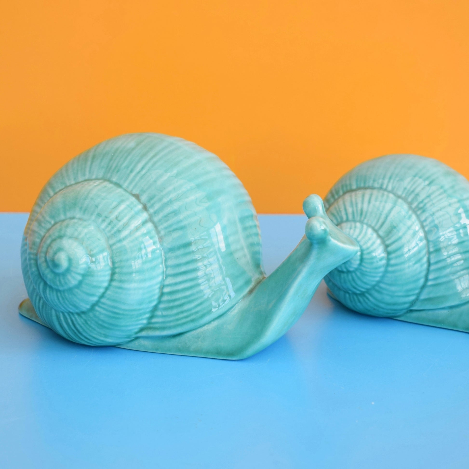 Vintage 1960s Ceramic Snails x2 - Teal - Anglia Pottery