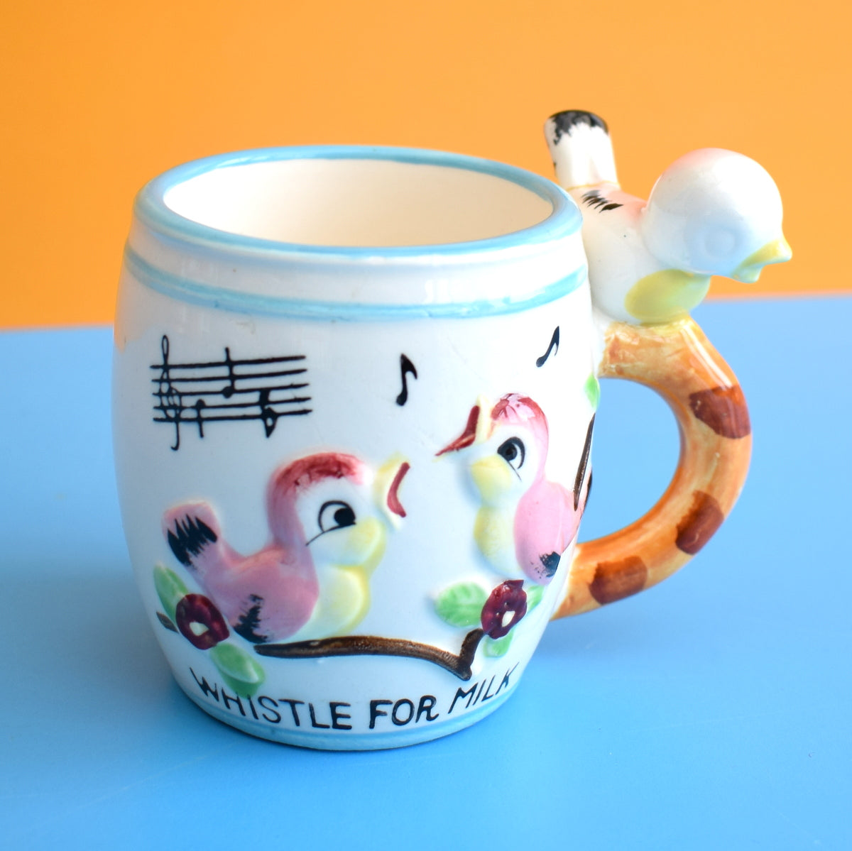 Vintage 1960s Childs Mug - Whistle For Milk - Blue Bird