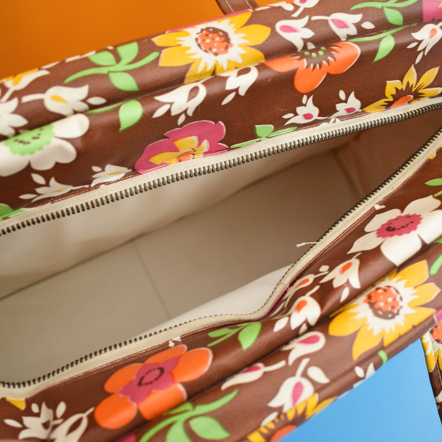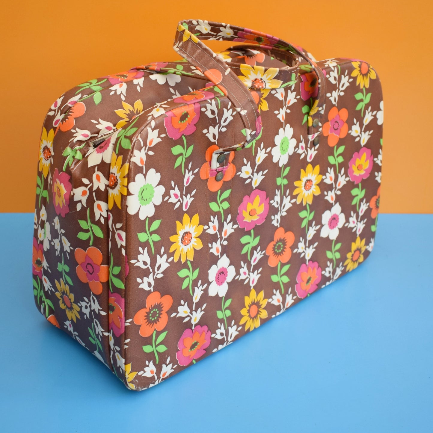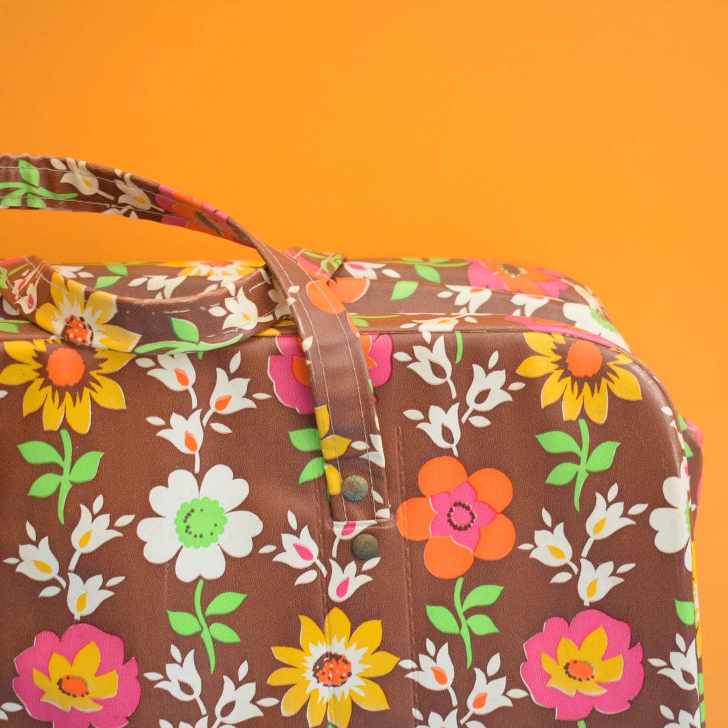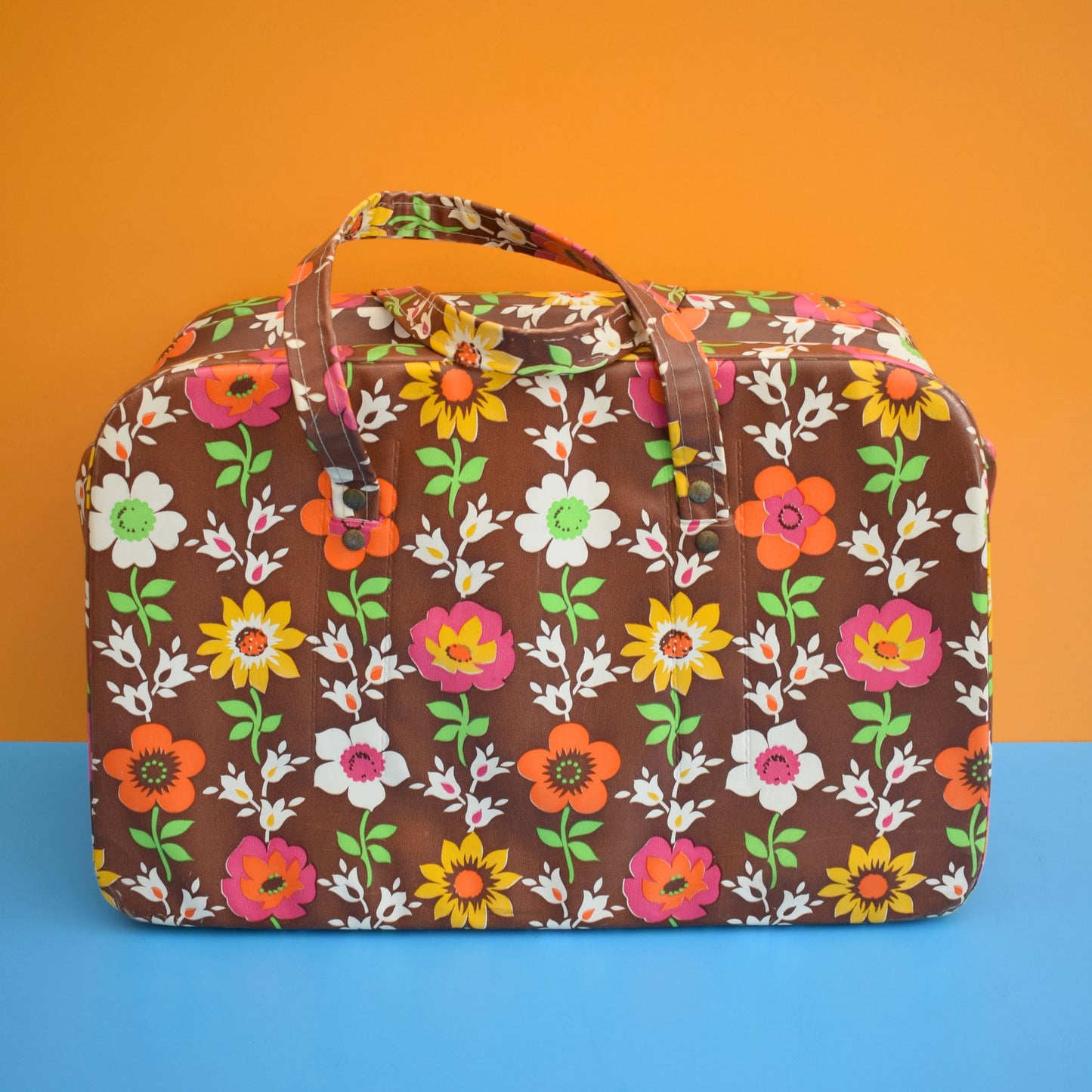 Vintage 1960s Cool Bag - Flower Power - Brown/ Pink