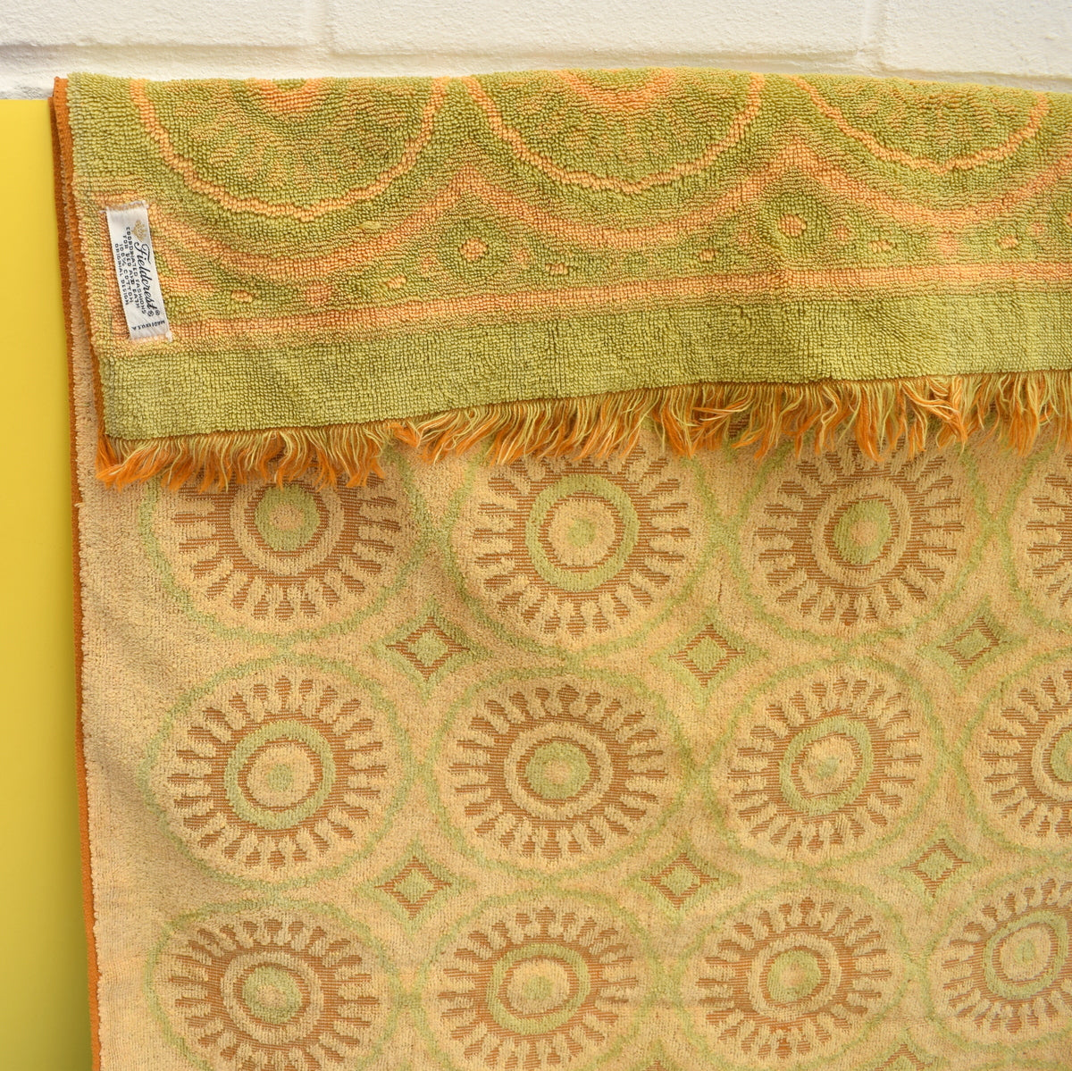 Vintage 1960s Cotton Bath Towel - Gold / Green