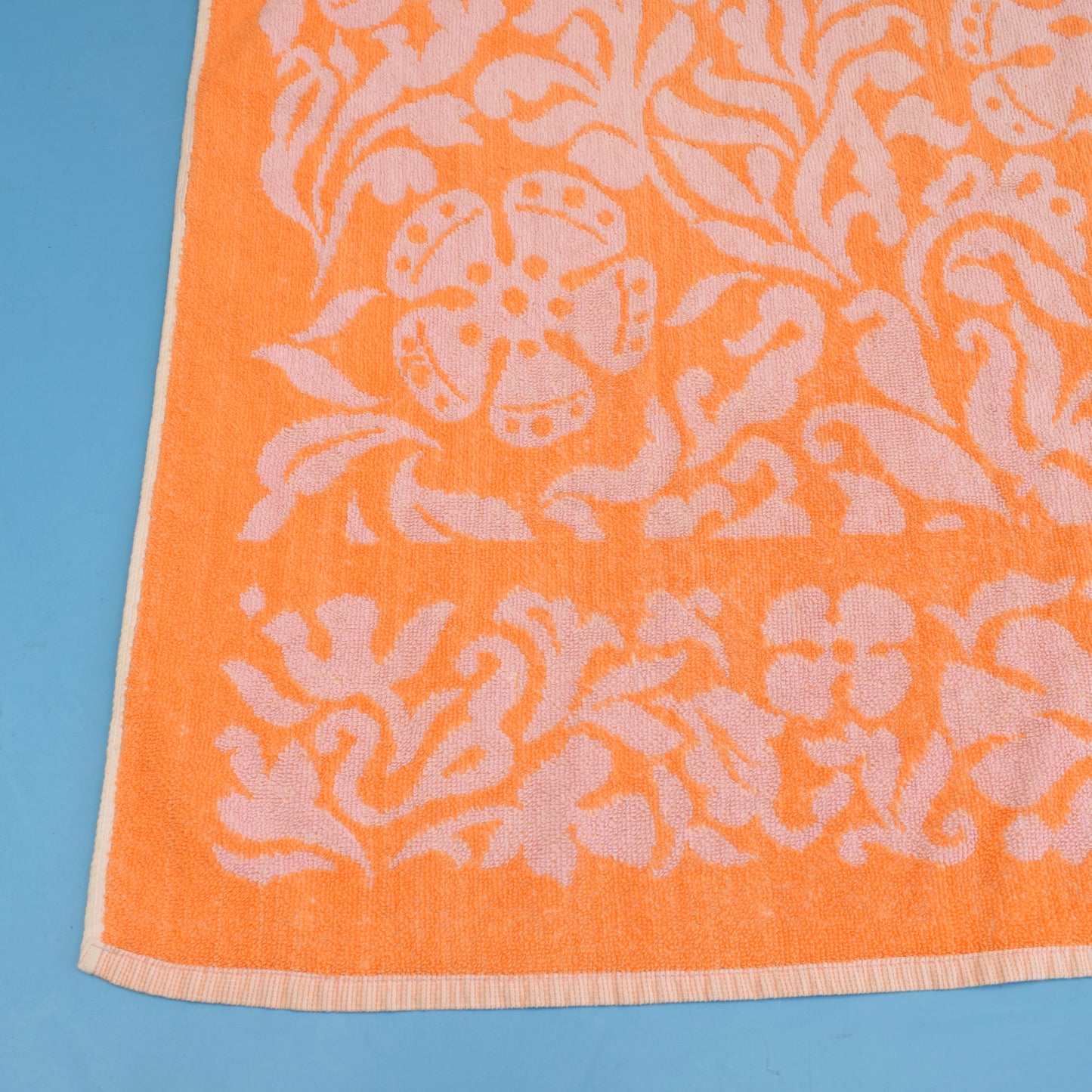 Vintage 1960s Cotton Bath Towel - Orange / Pink
