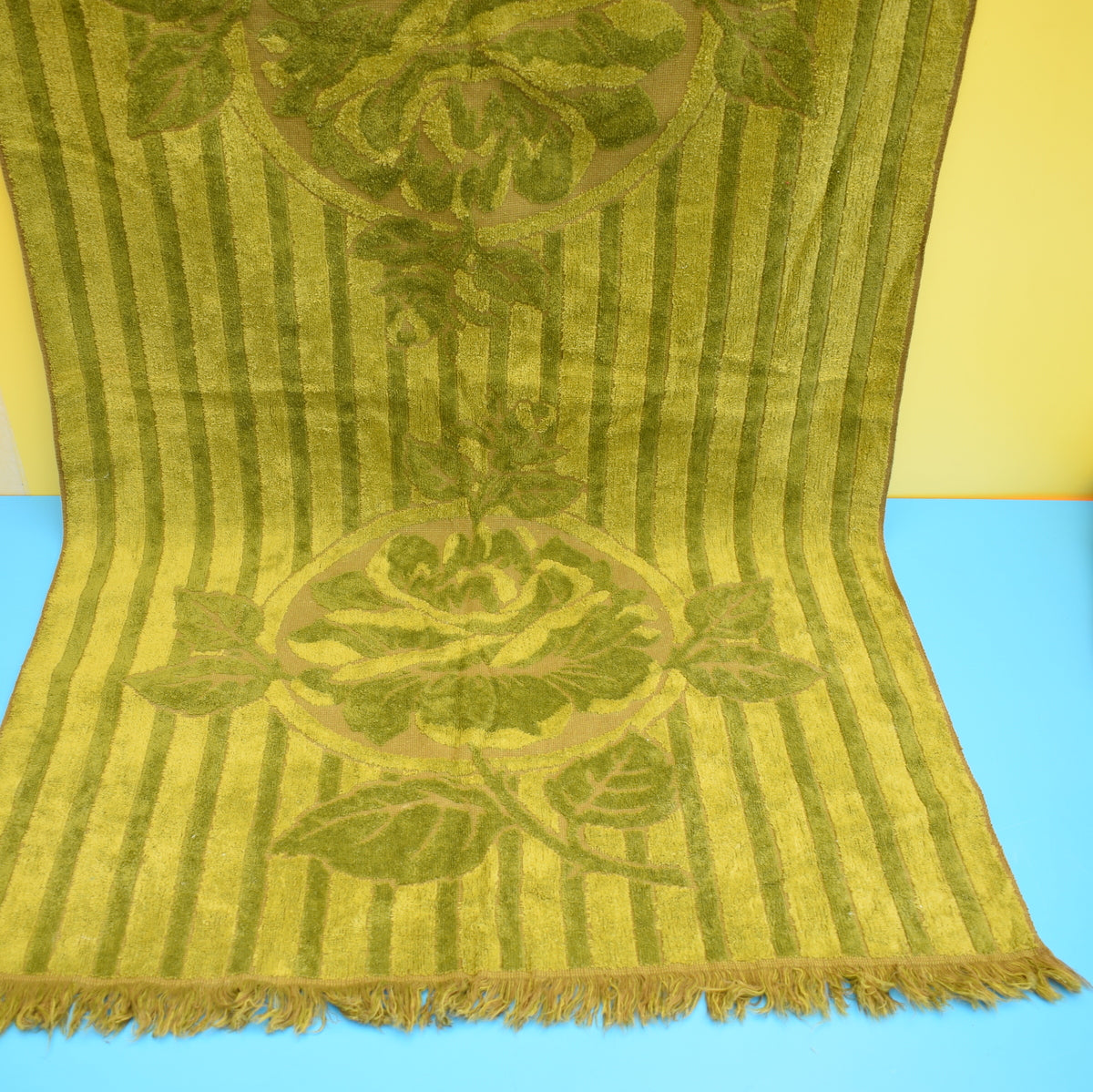 Vintage 1960s Cotton Bath Towel - Moss Green