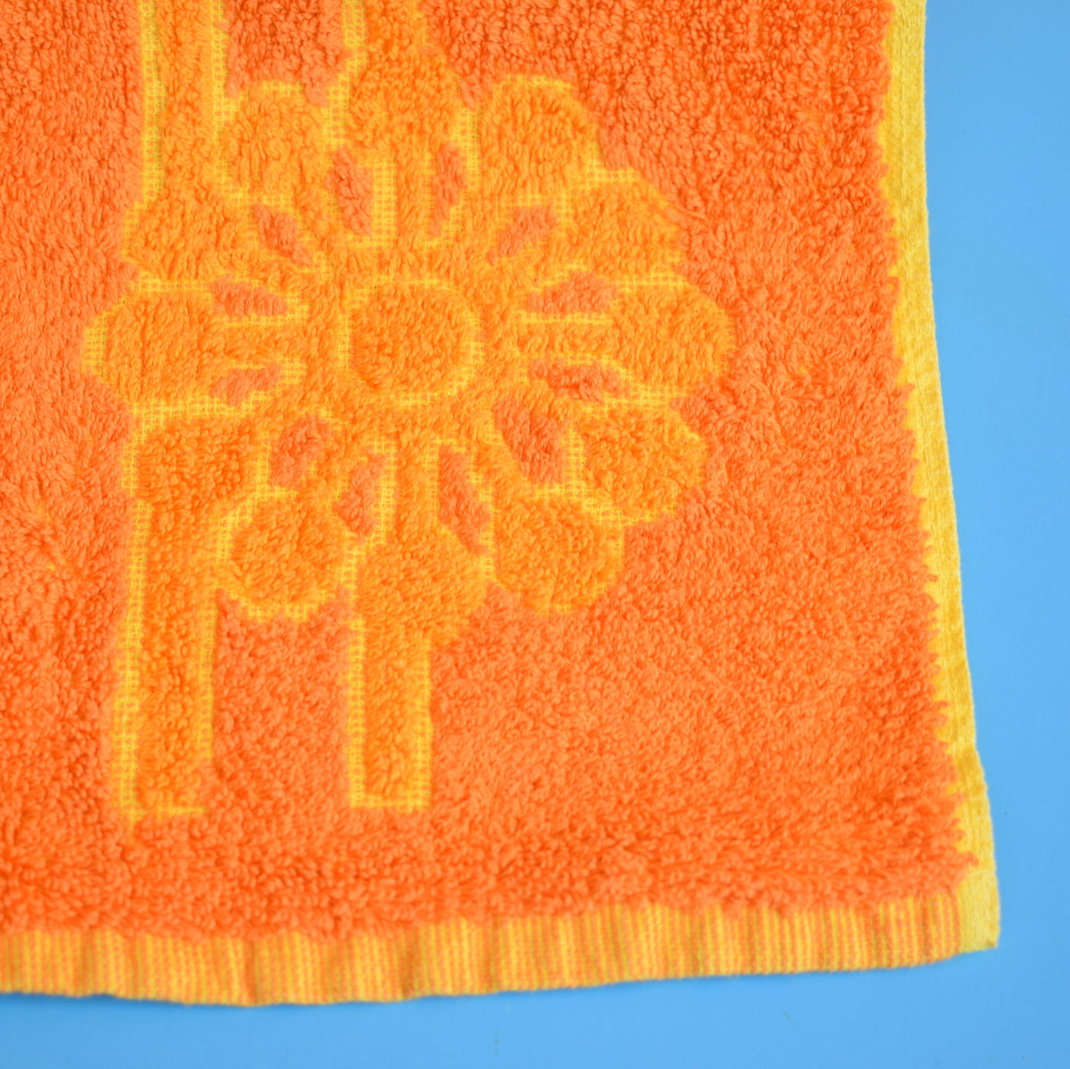 Vintage 1960s Cotton Bath Towels - Flower Power- Orange