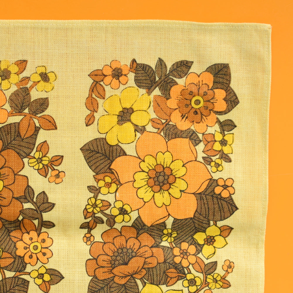 Vintage 1960s Cotton Tea Towel - Flower Power - Orange