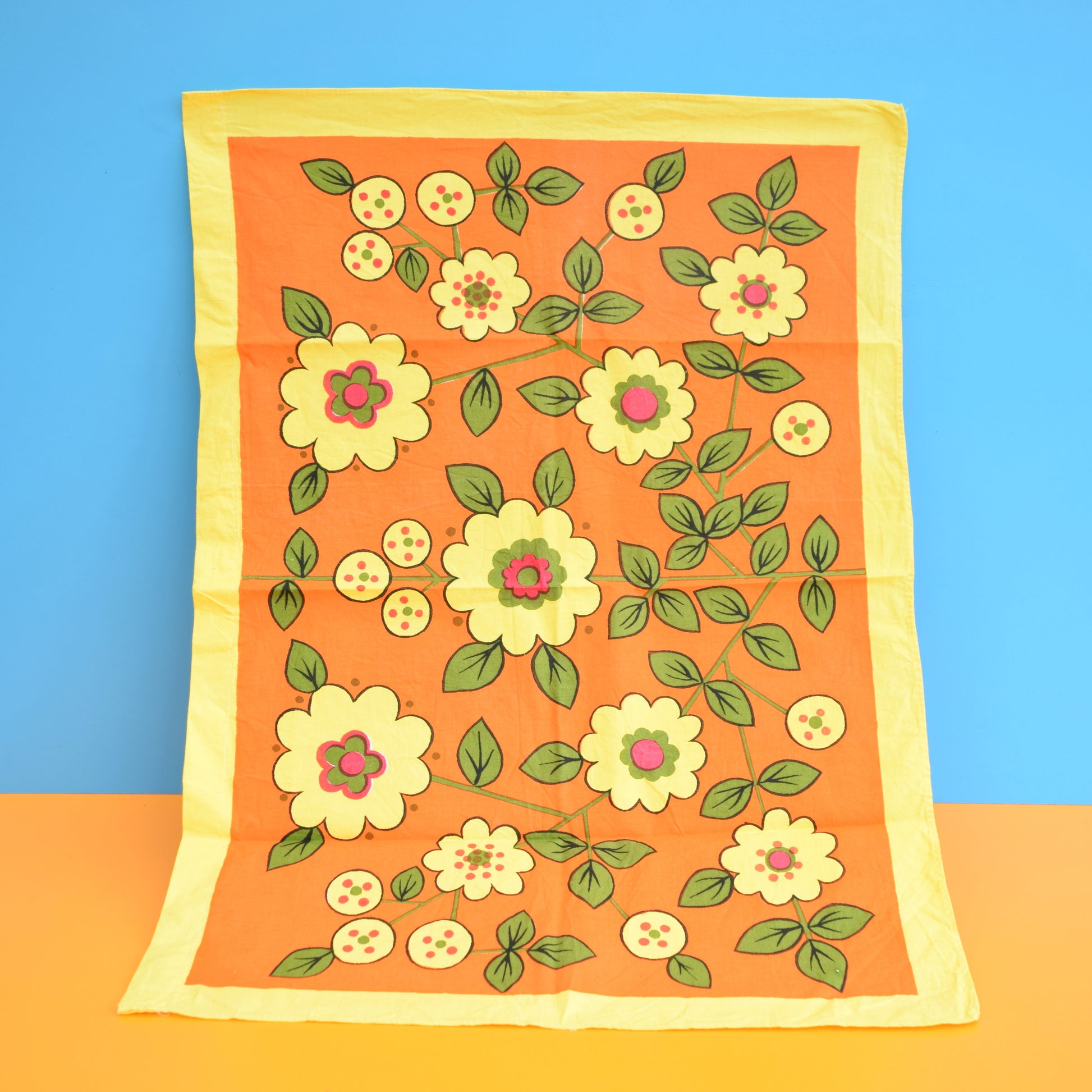 Vintage 1960s Cotton Tea Towel - Flower Power - Orange & Yellow