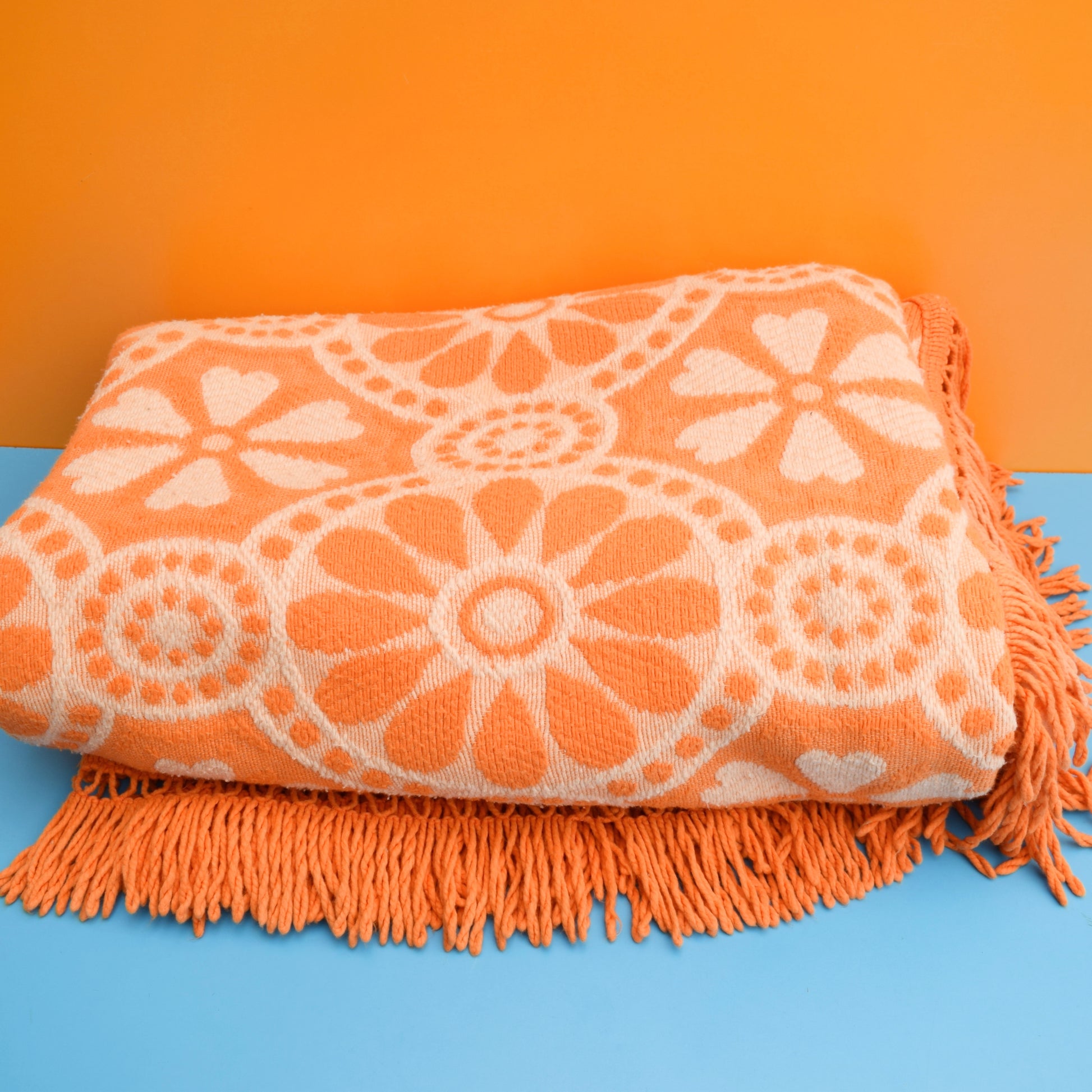 Vintage 1960s Double Bed Cover - Flower - Orange