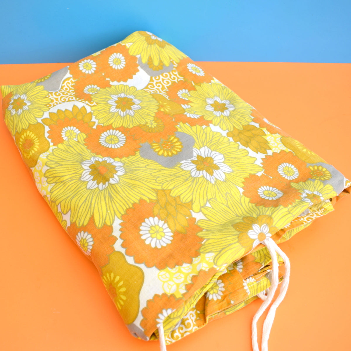 Vintage 1960s Single Duvet Cover - Flower Power - Yellow & Grey