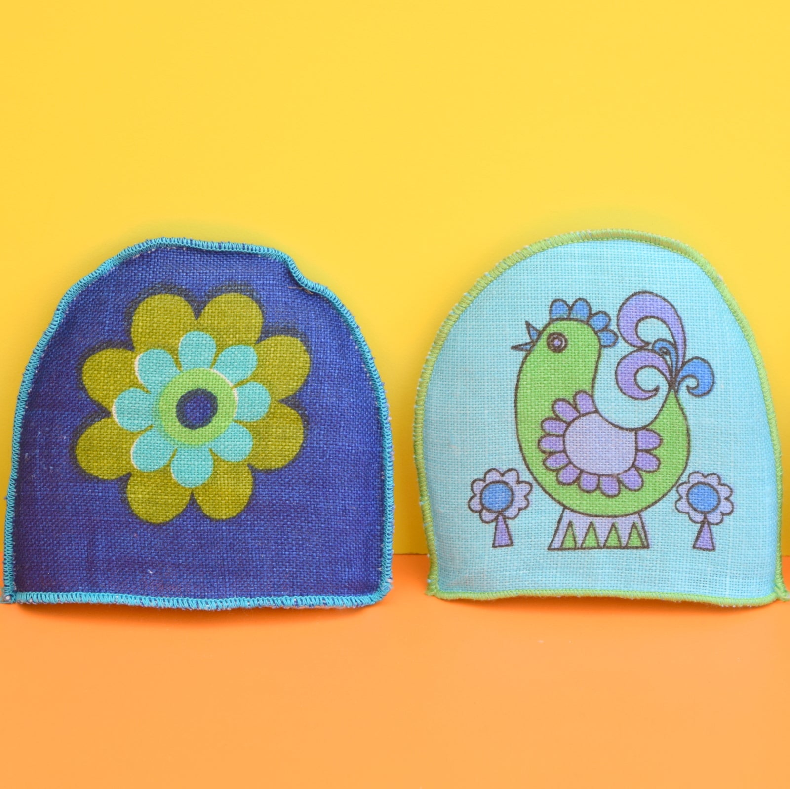 Vintage 1960s Egg Cosies - Flower Power - Blue, Purple x4