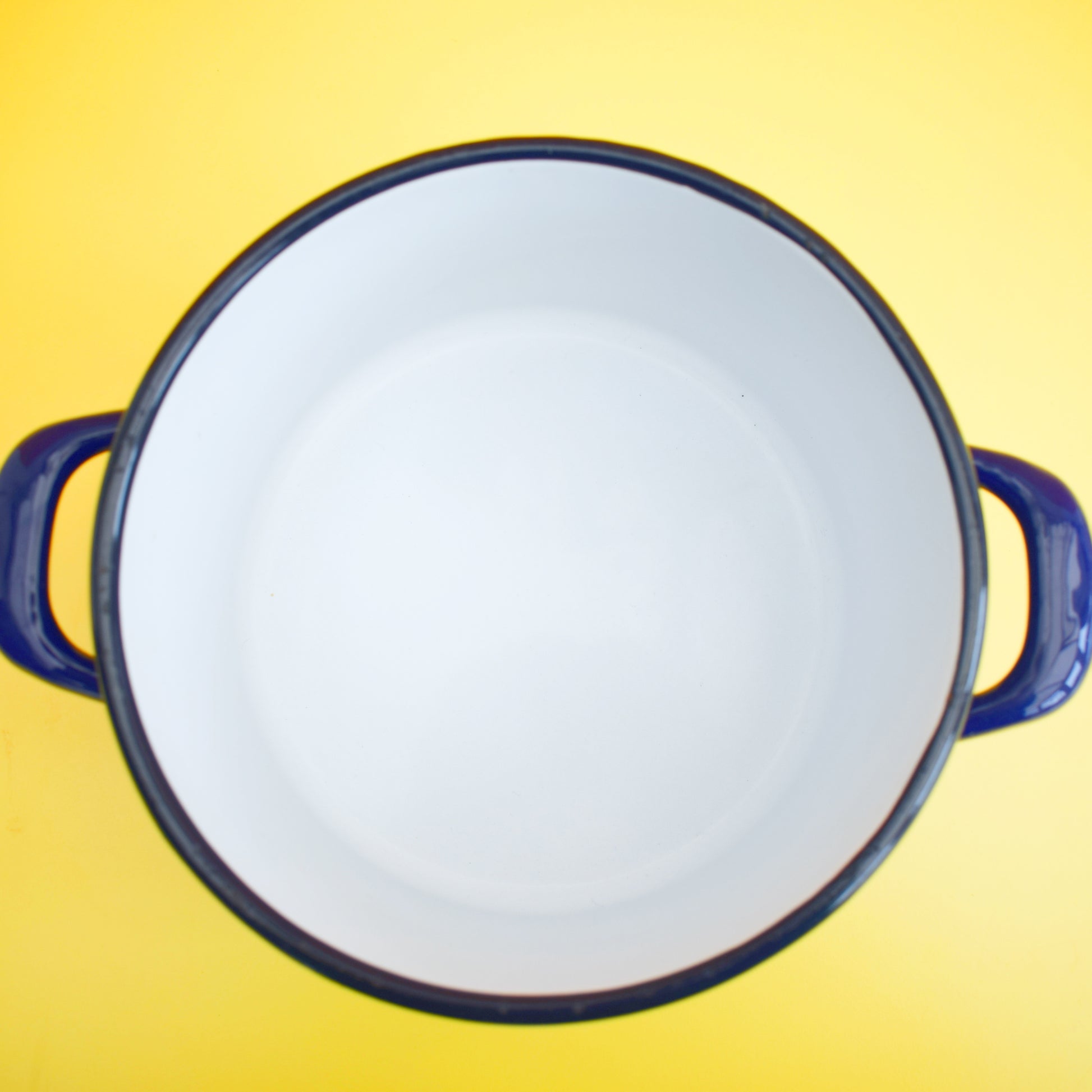 Vintage 1960s Enamel Casserole - Blue Flower Power