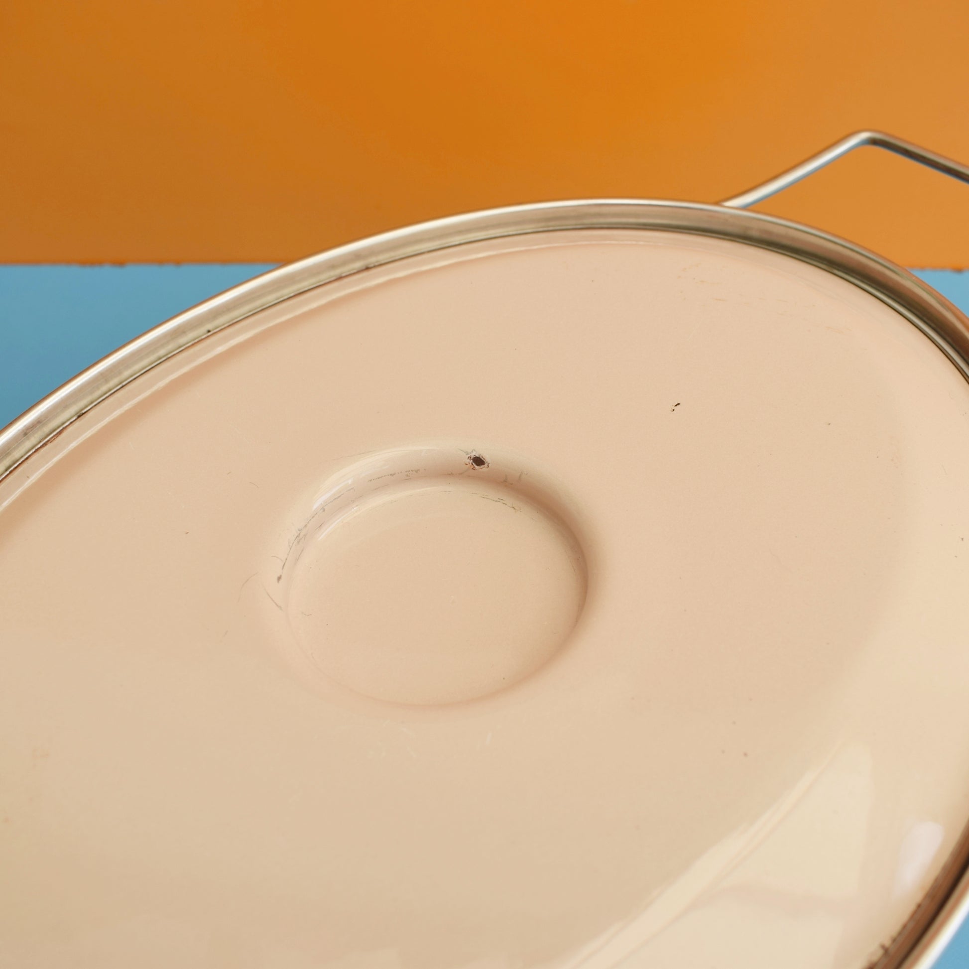 - Features Suitable for serving and light cooking, decorative vintage appeal, collectible mid‑century piece, durable enamel surface, chromed lid detail (missing centre pull)