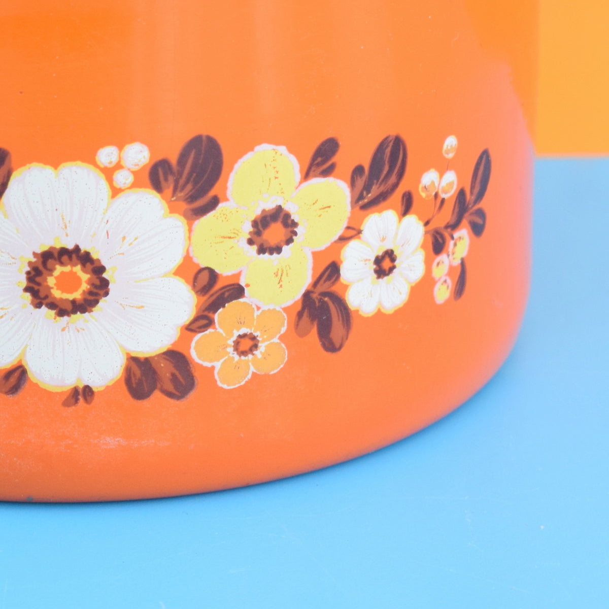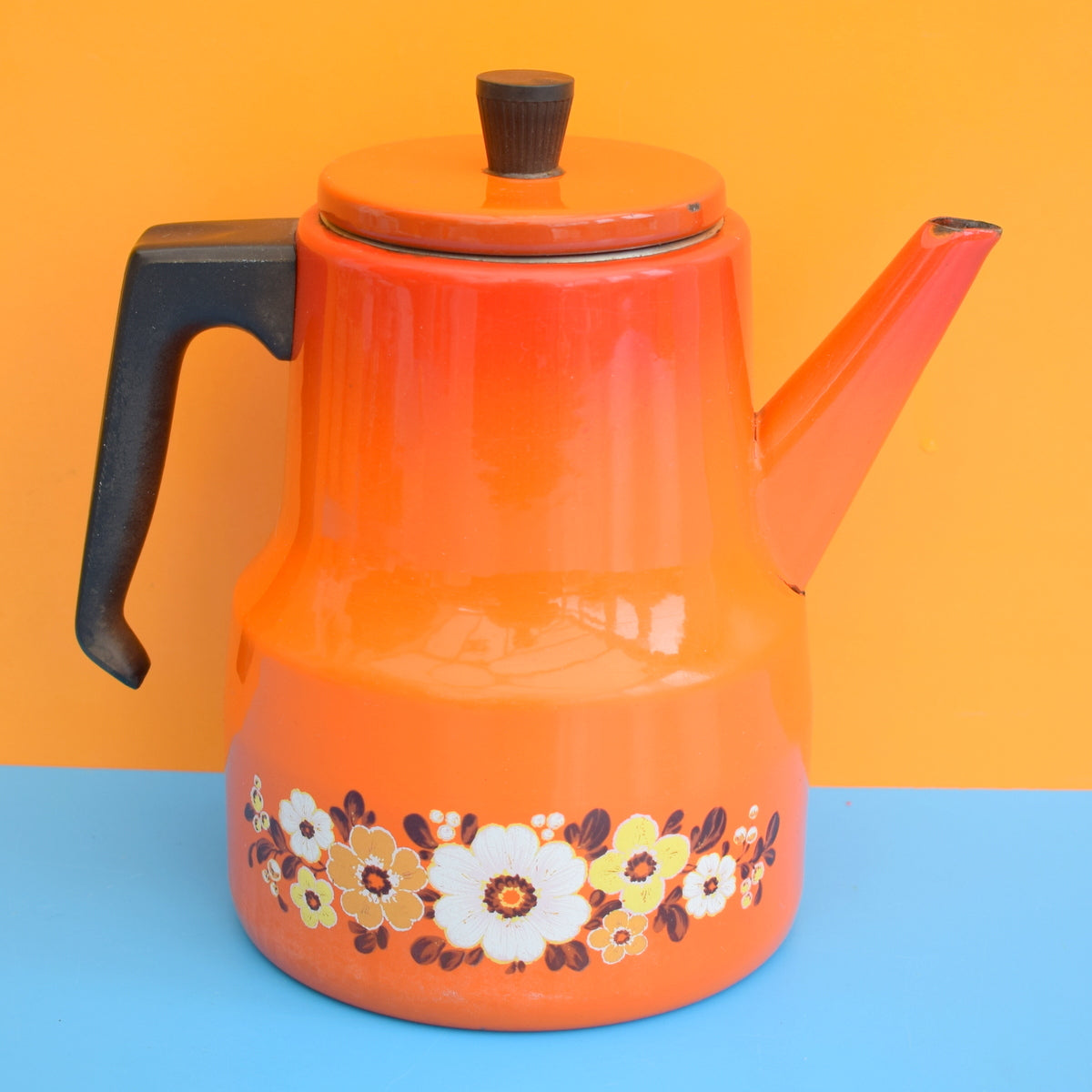 Vintage 1960s Enamel Coffee Pot - Orange Flowers
