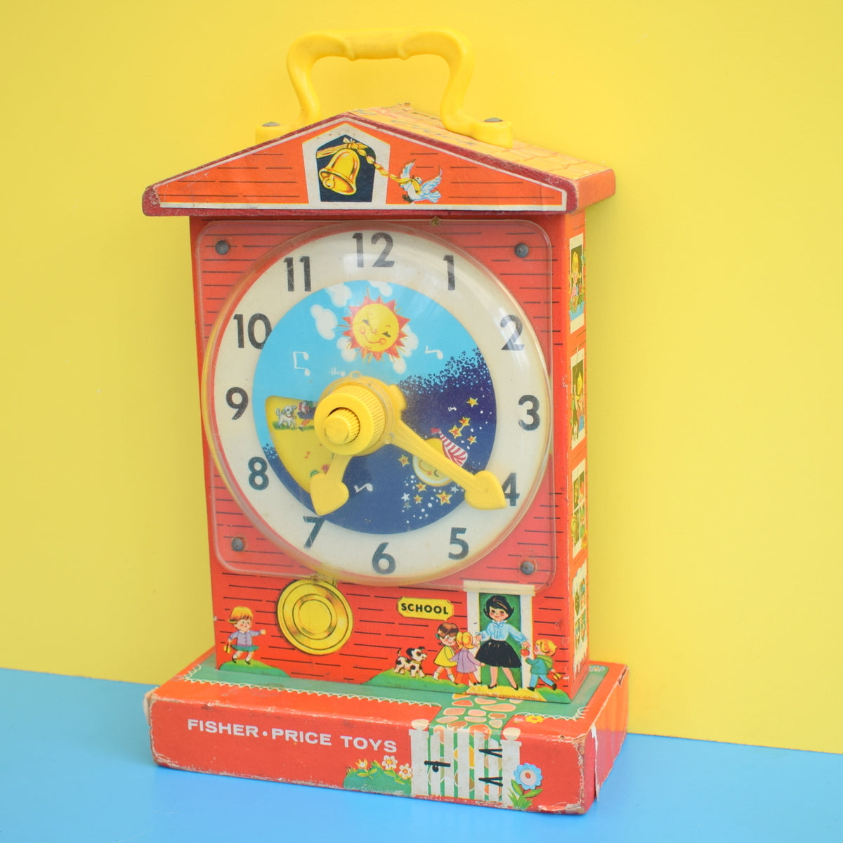 Vintage 1960s Fisher Price Music Box Teaching Clock - Wooden