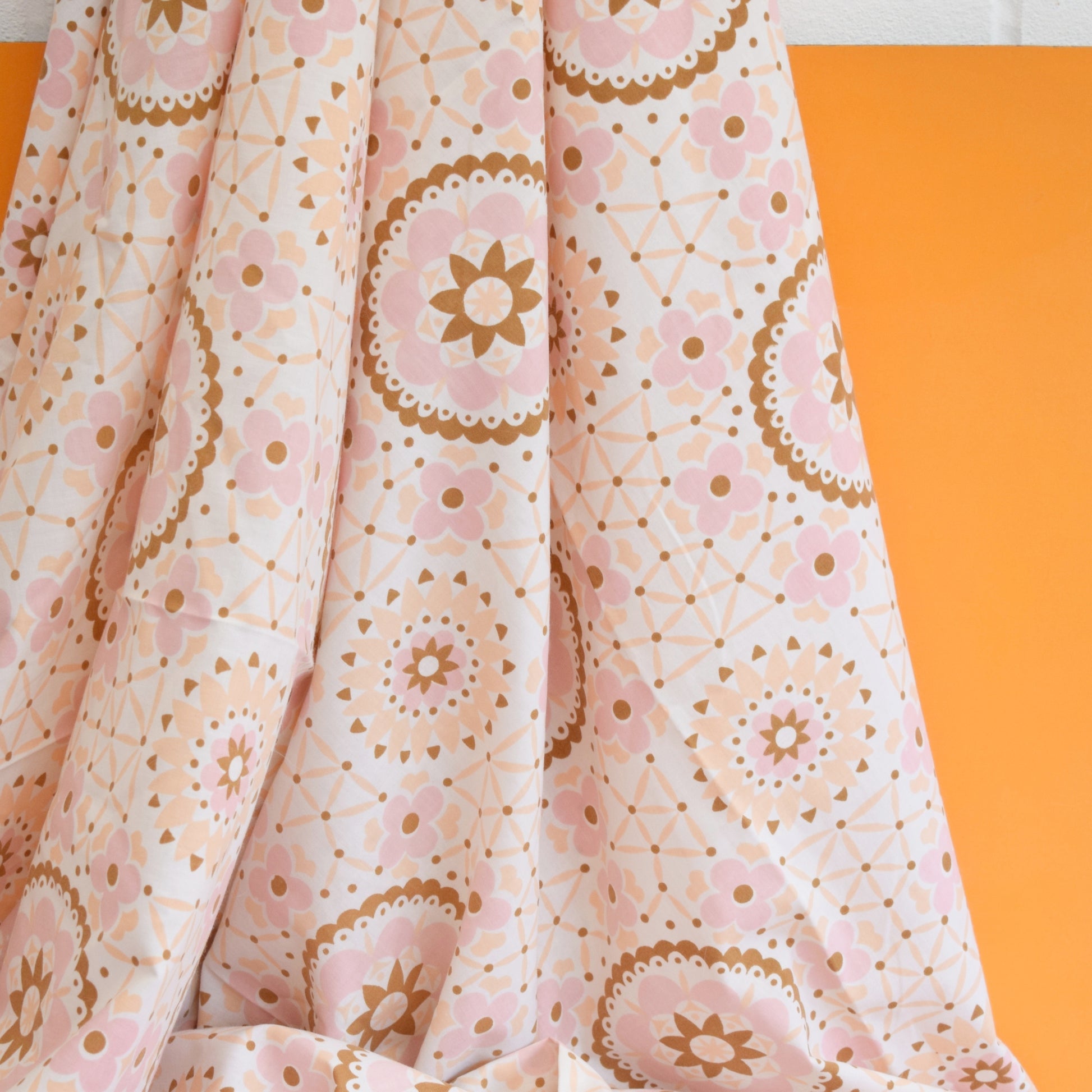 Vintage 1960s Flat Sheet/ Fabric & Pillowcase - Peach/ Pink