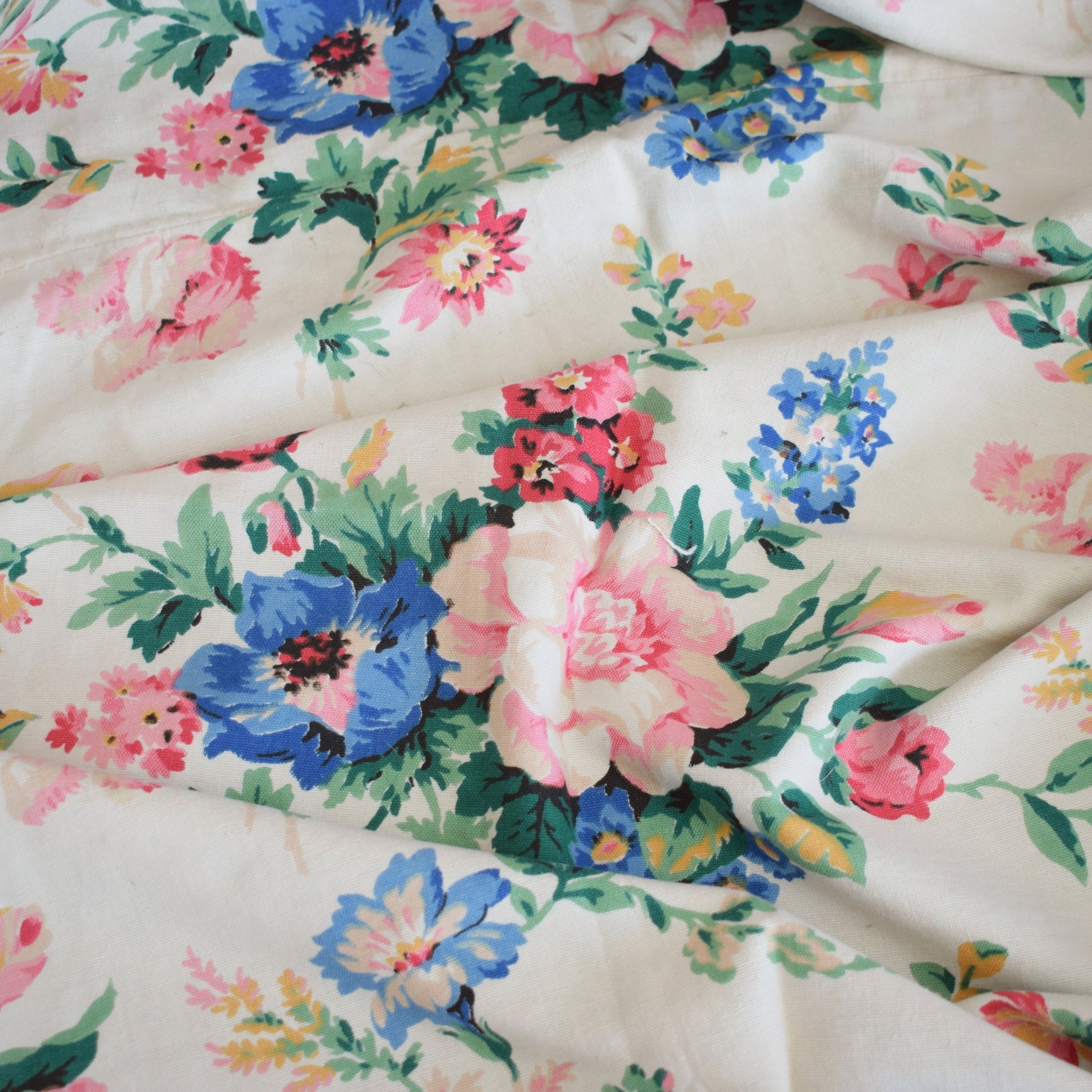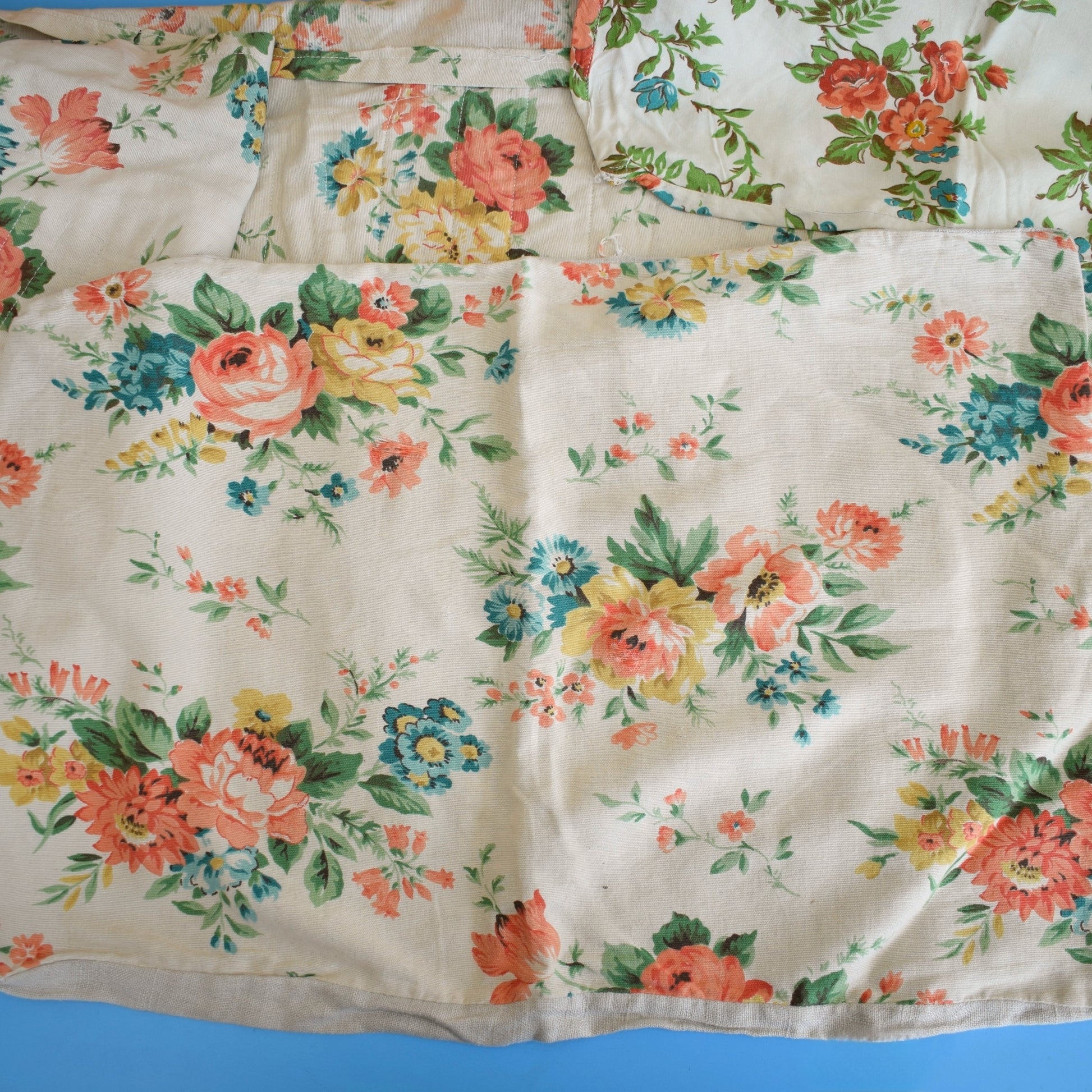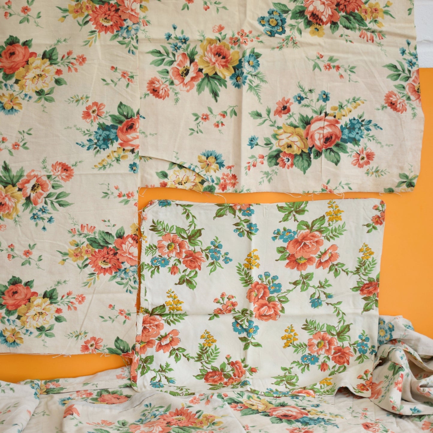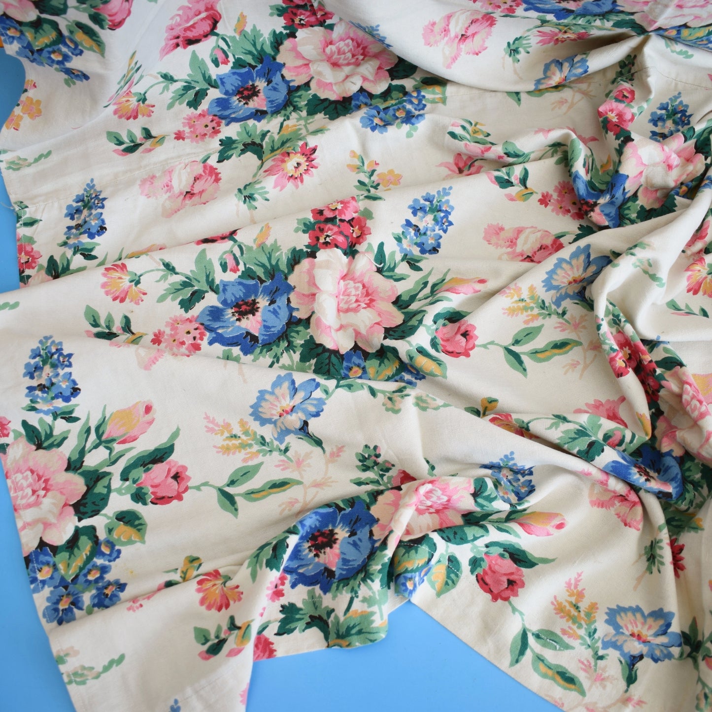 Vintage 1950s Floral Rose Cotton Fabric - Pink/ Peach