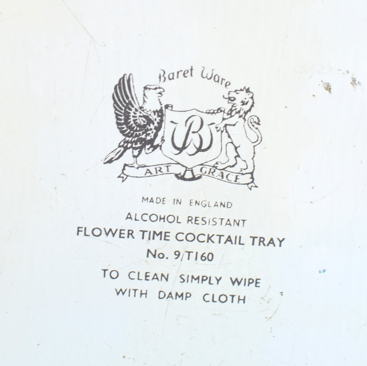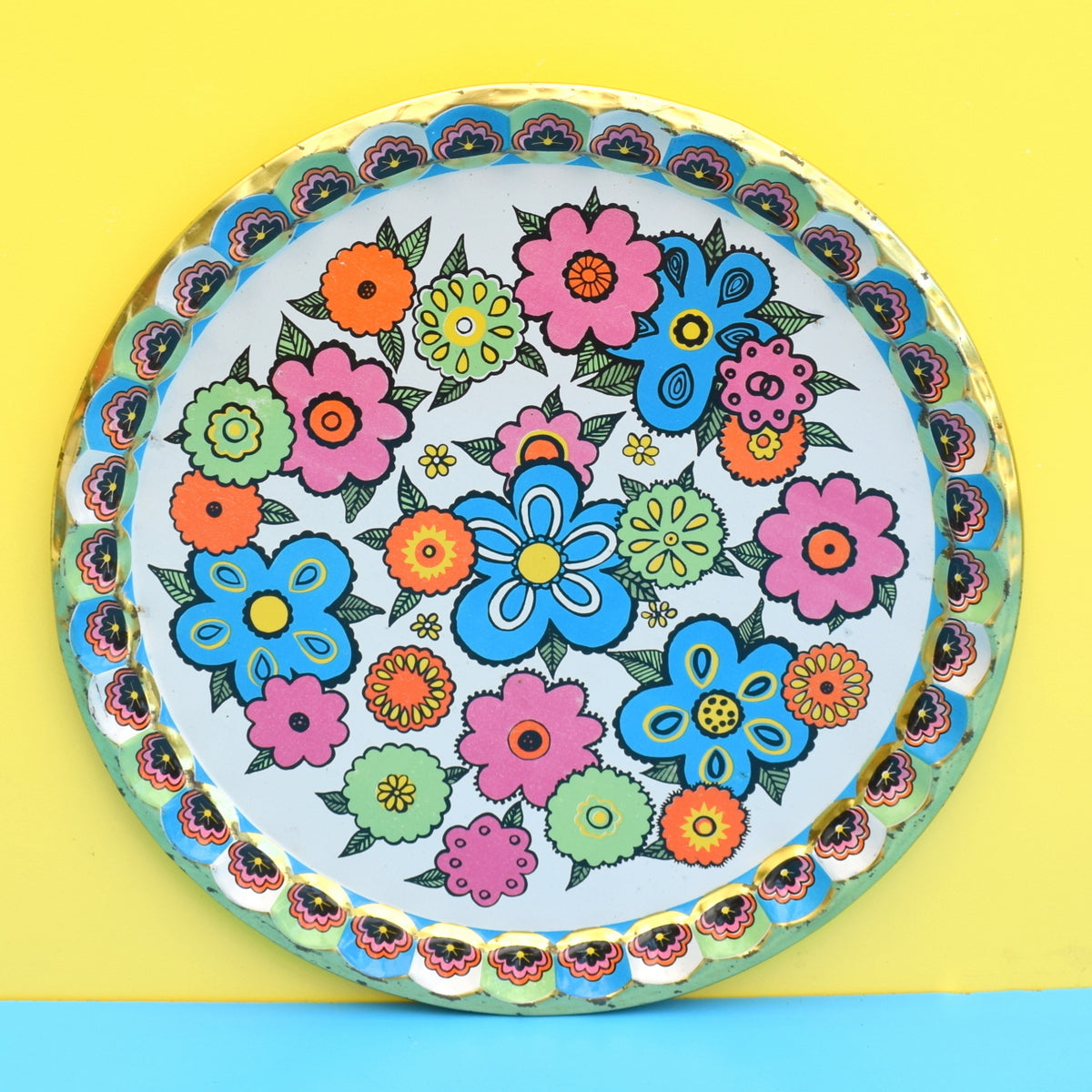 Vintage 1960s Flower Power - Baretware - Round Tin Cocktail Tray - Pink