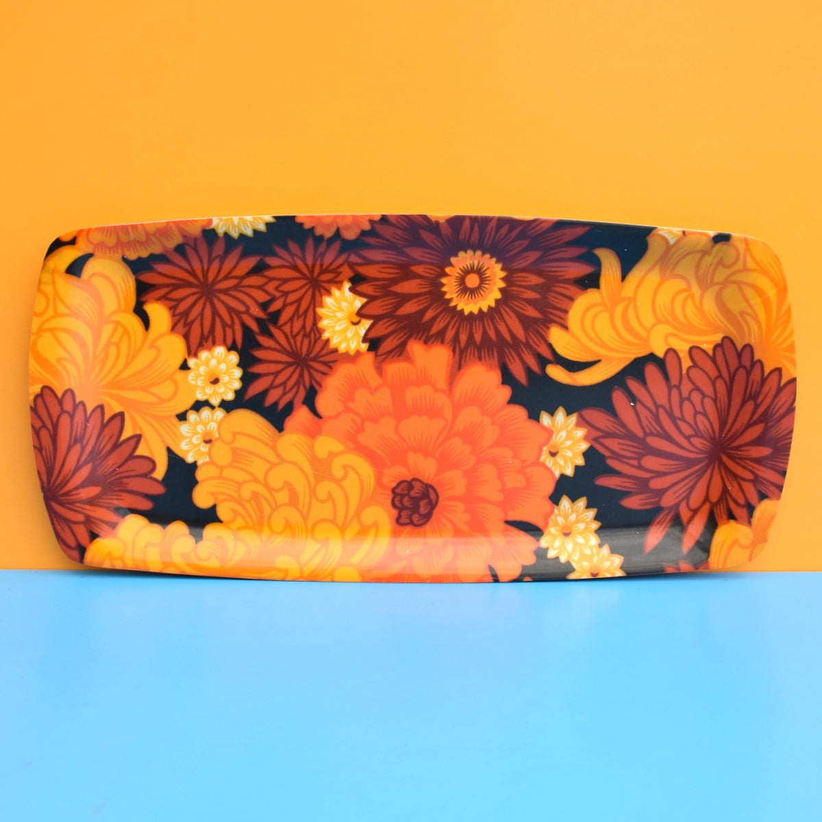 Vintage 1960s Flower Power Narrow Thetford Tray - Orange