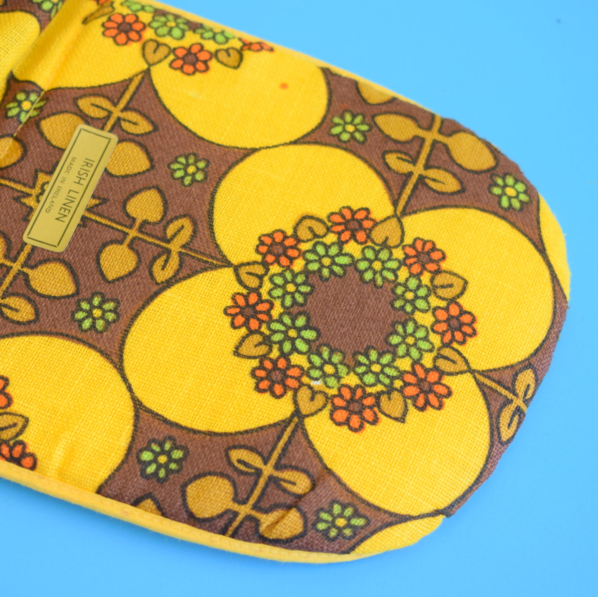 Vintage 1960s Flower Power Oven Glove - Orange, Brown & Yellow