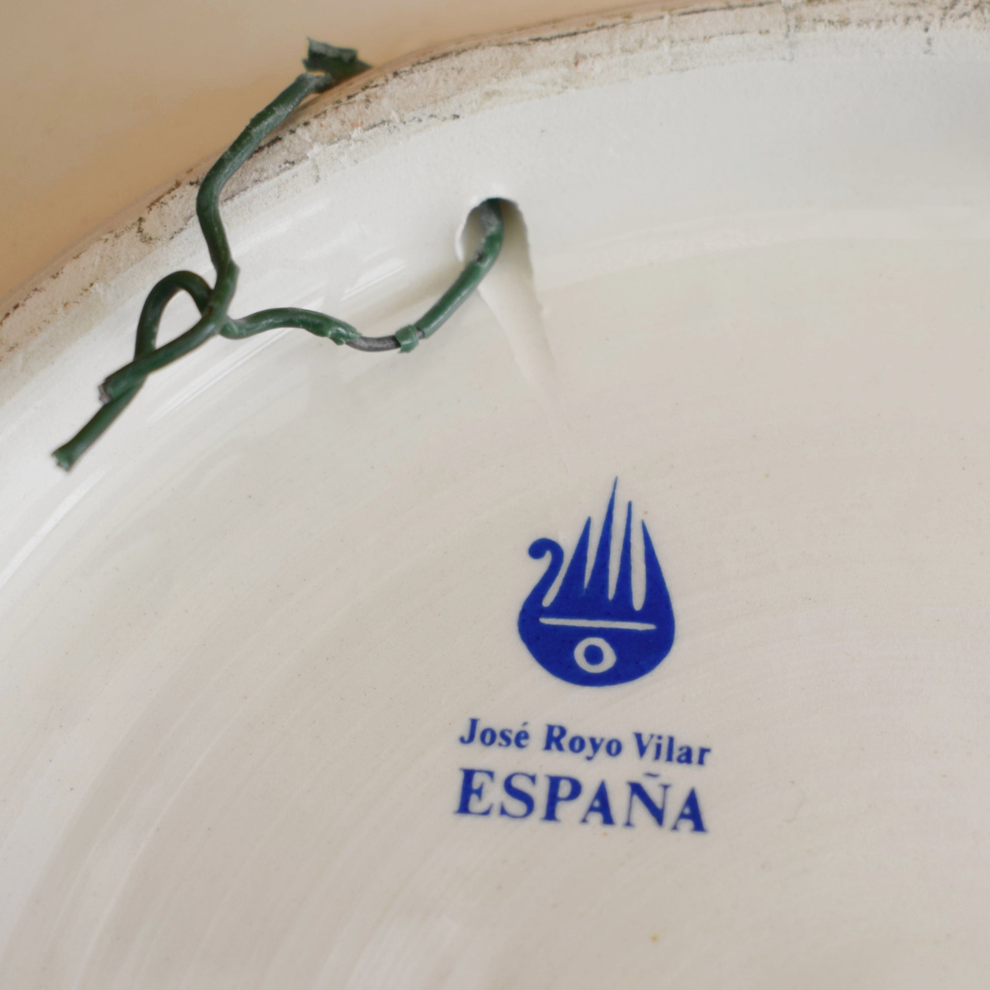 Hand-painted by noted Spanish designer Jose Royo Vilar, this decorative plate retains crisp, vibrant glazing with no chips or cracks — a testament to careful preservation. At 23 cm diameter it’s compact enough for clustered gallery walls yet striking enough to stand alone above a mantel, in a kitchen alcove, or as the focal point of a vintage display.