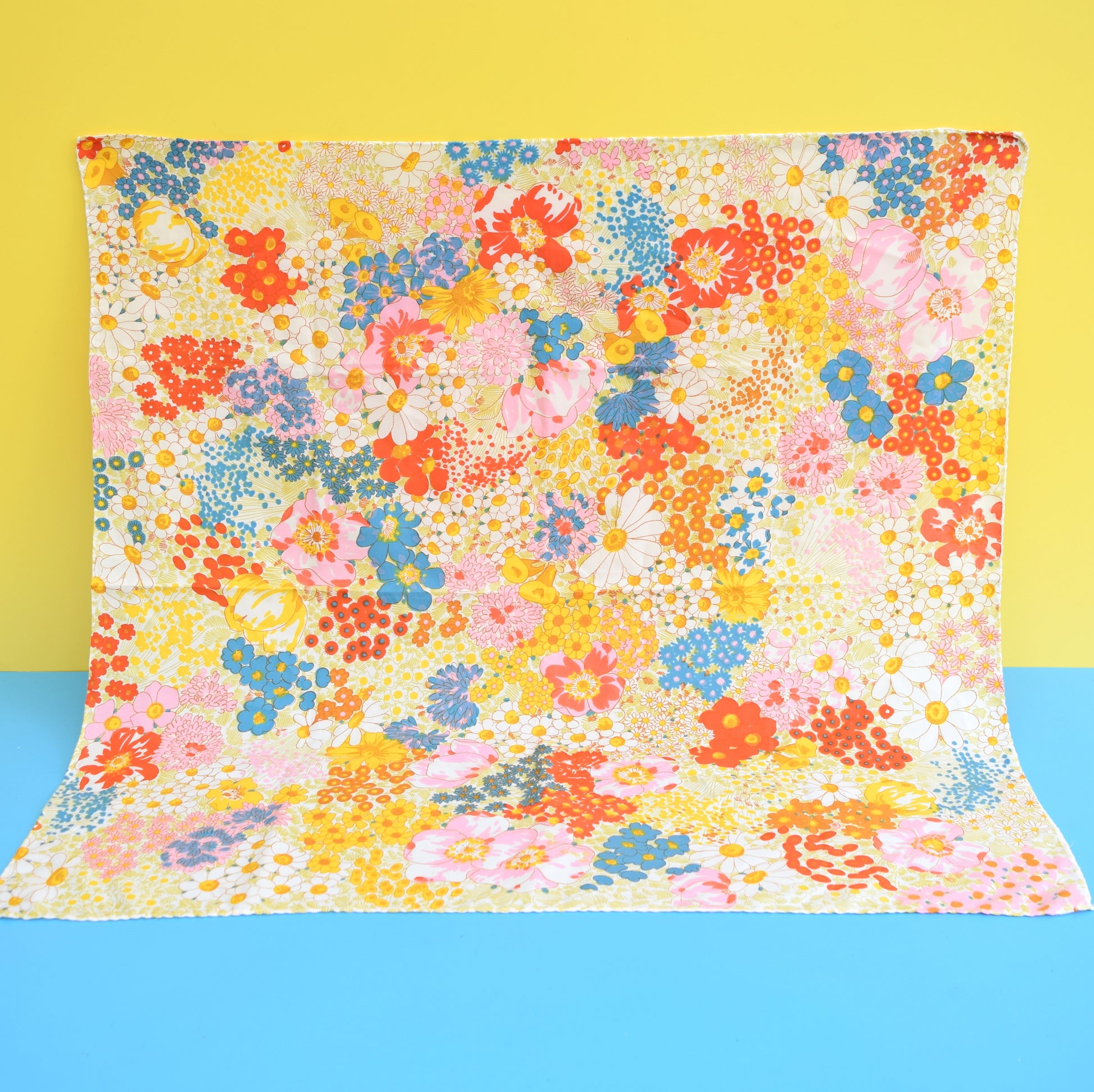 Vintage 1960s Flower Power Square Scarf - Pink, Red, Yellow, Blue