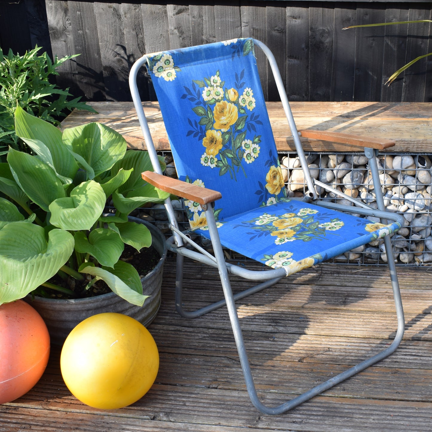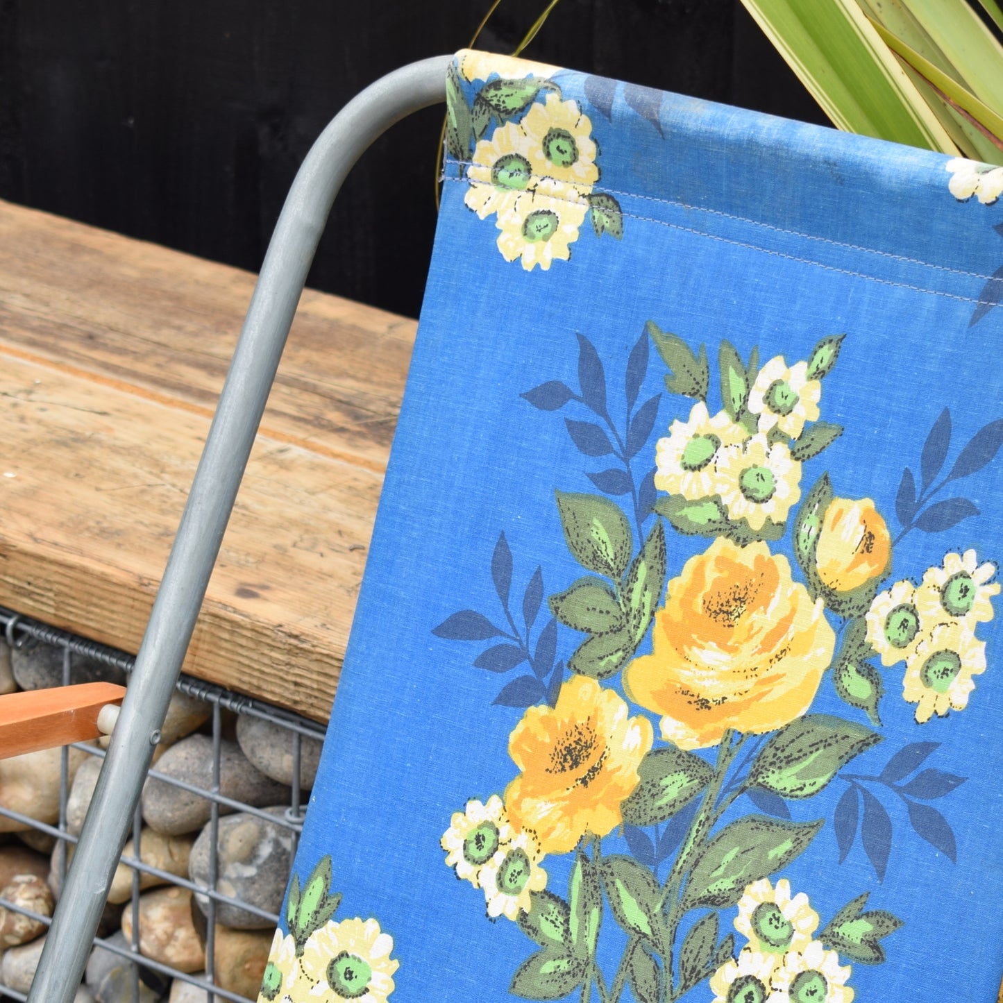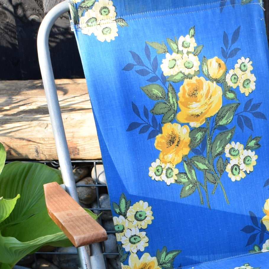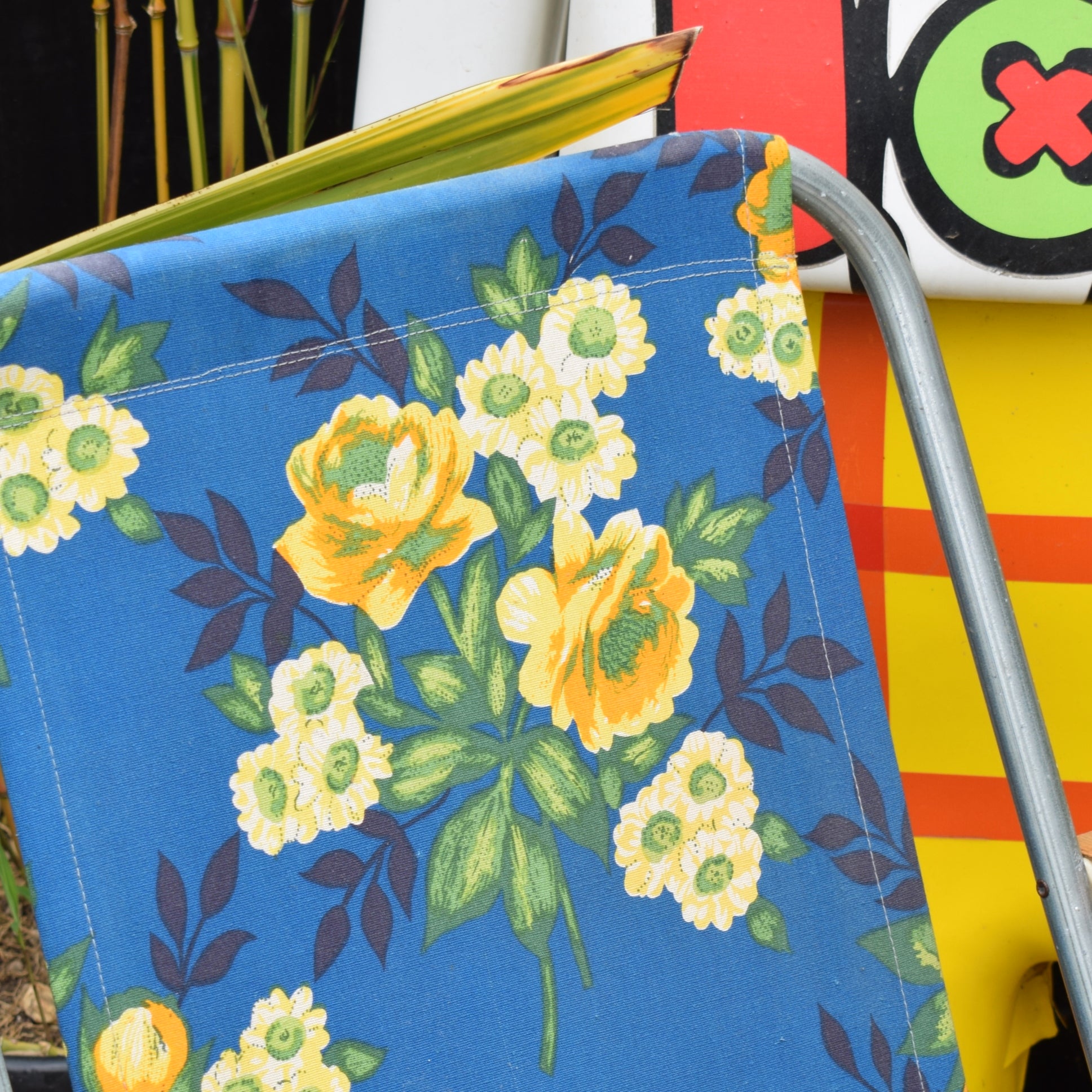 Vintage 1960s Folding Garden Chair - Flower Power - Blue & Yellow Rose