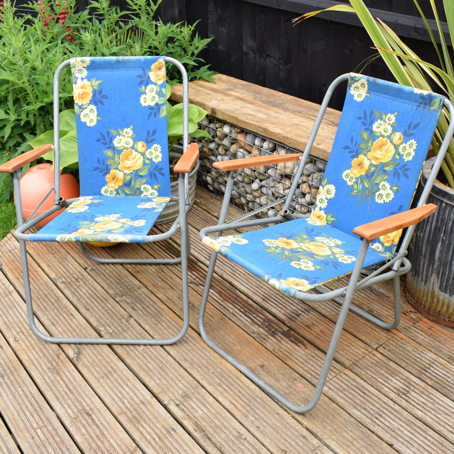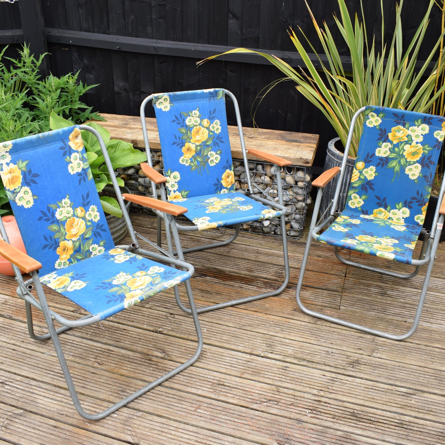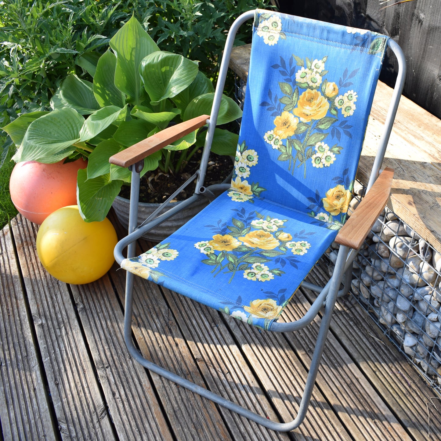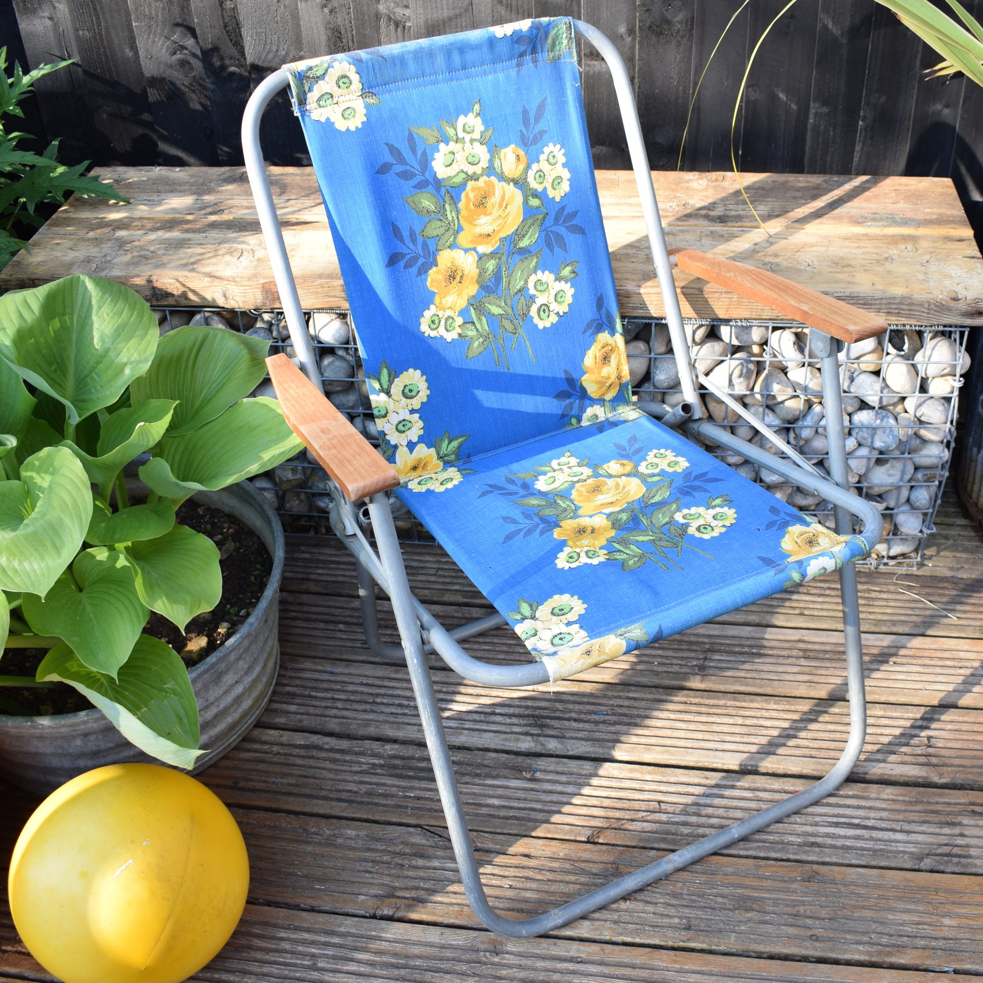 Vintage 1960s Folding Garden Chair - Flower Power - Blue & Yellow Rose